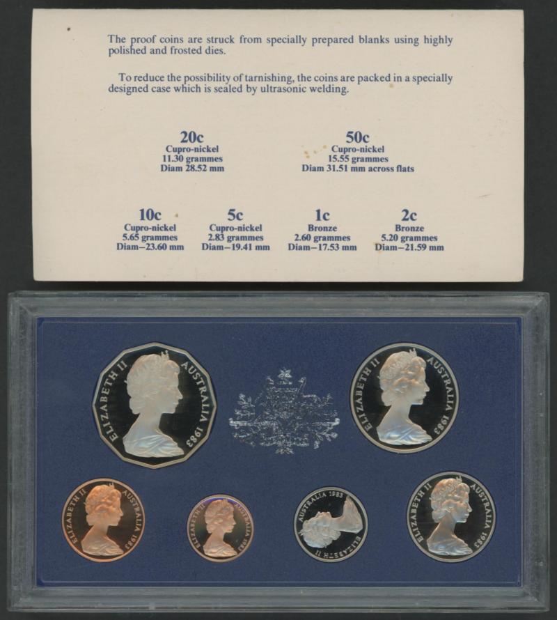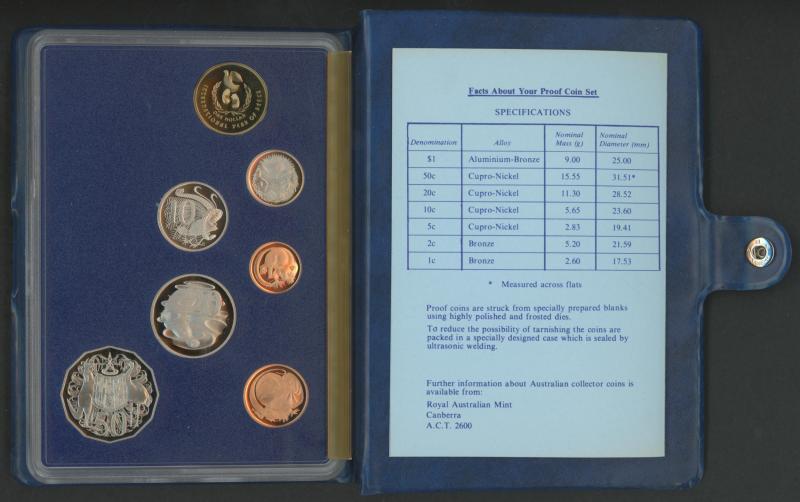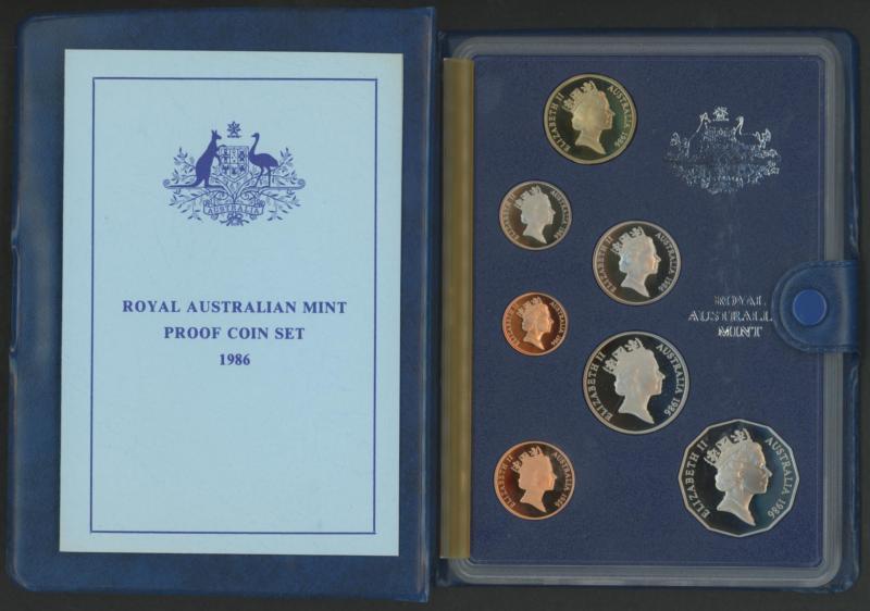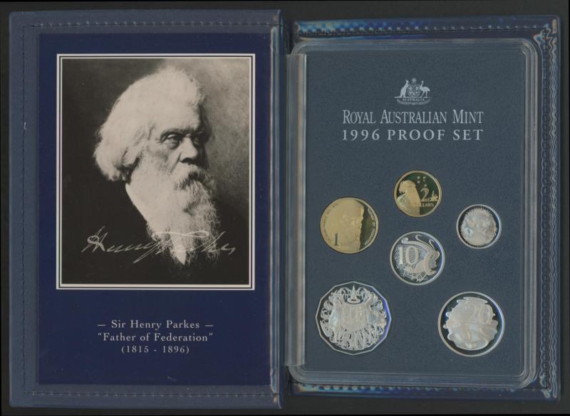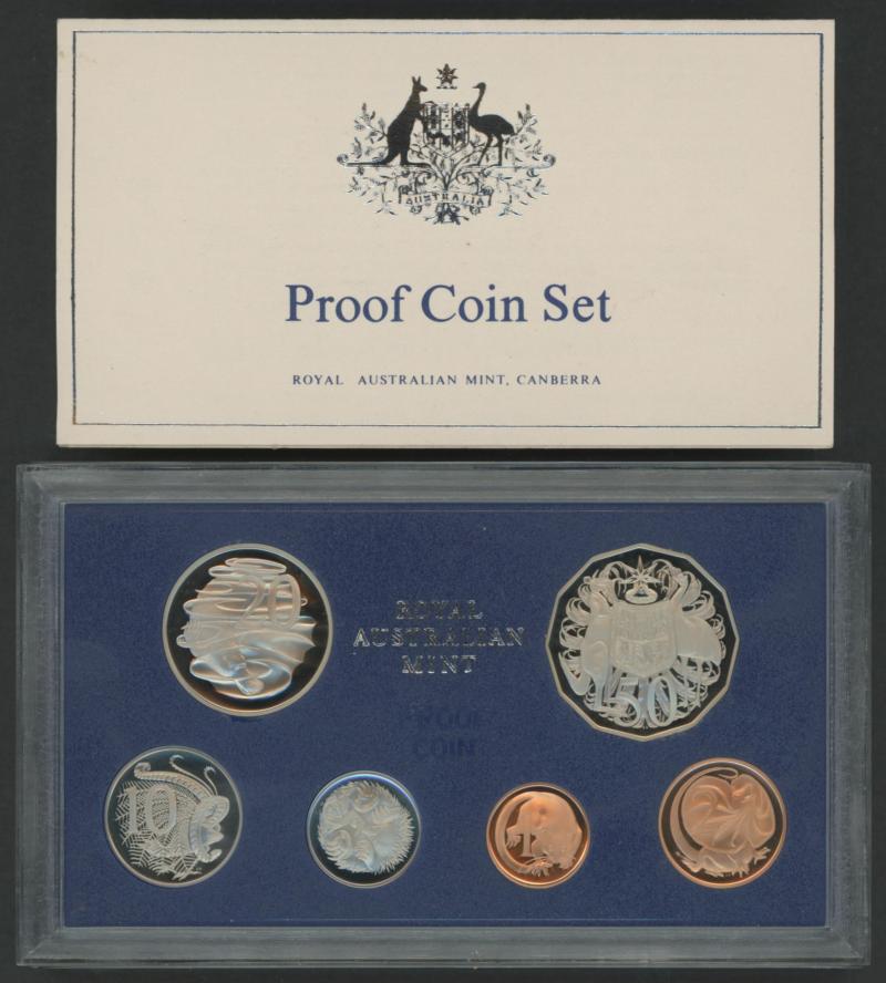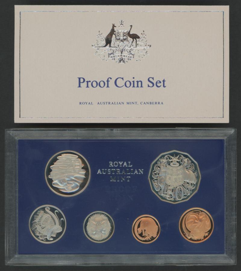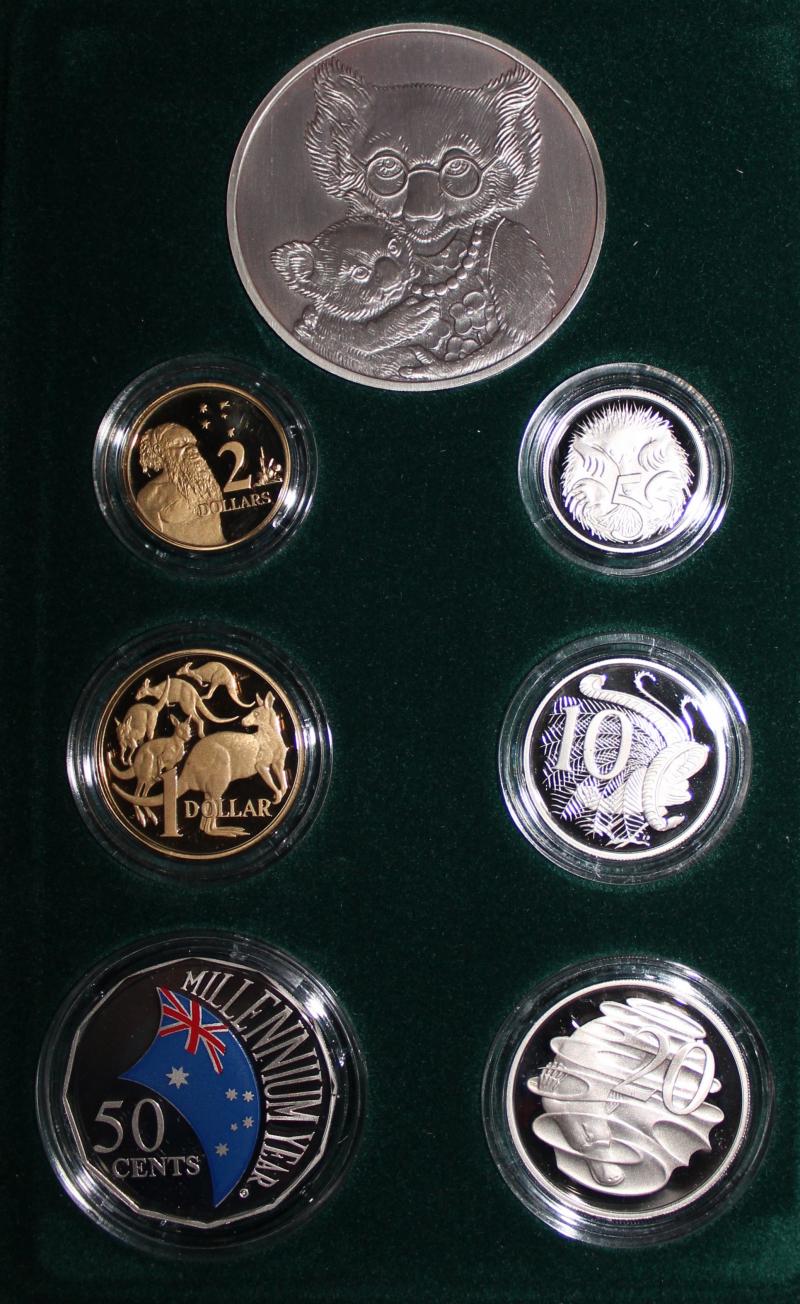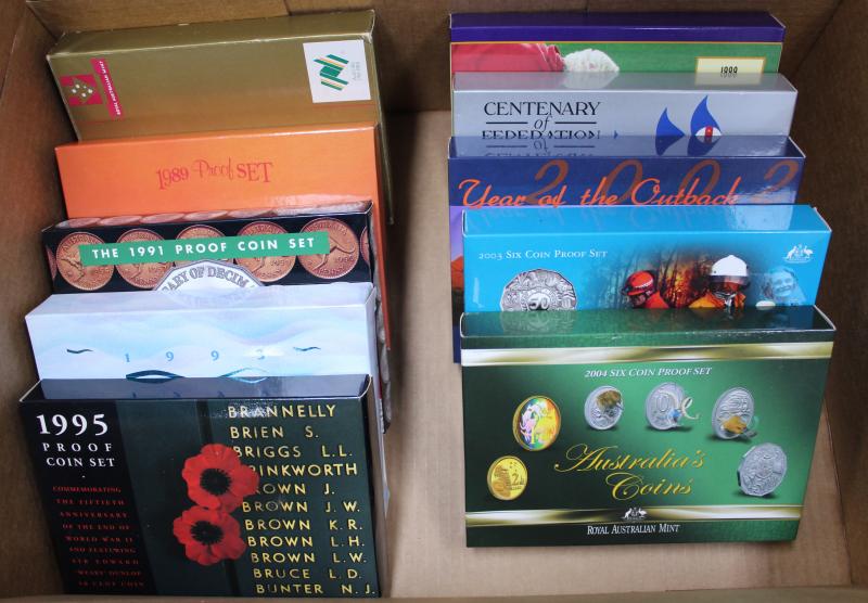 Six-Coin Proof sets 1981, 1985-2004 run plus 2000 Millenium Baby Coin set (no packaging), a few earlier without outer packaging.