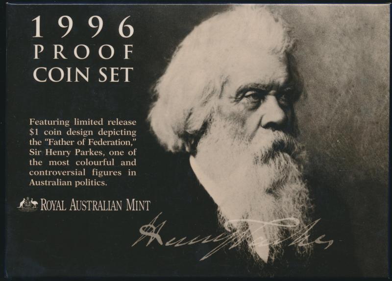 Six-Coin Proof sets 1979-1996 date run, plus 1984 $1 single, with polystyrene or cardboard outers (a few aged).