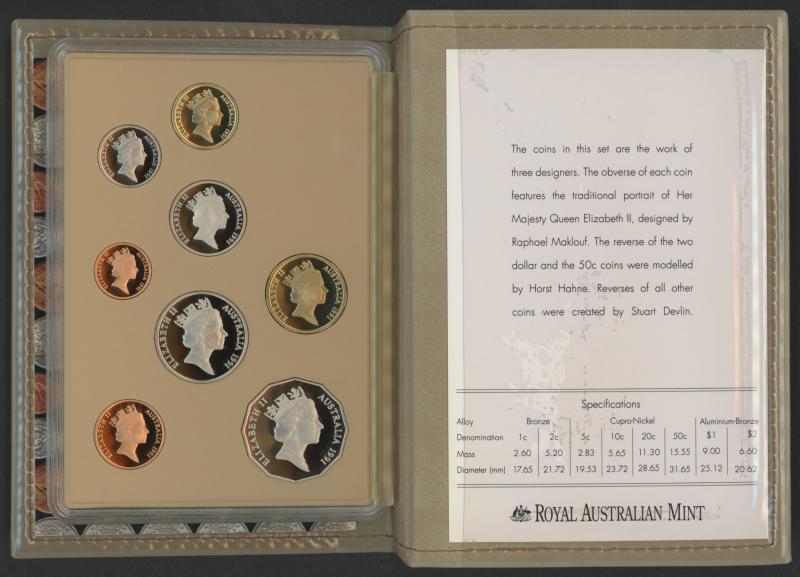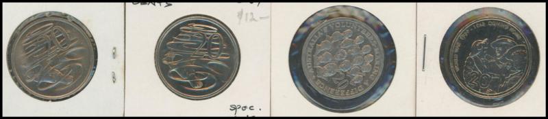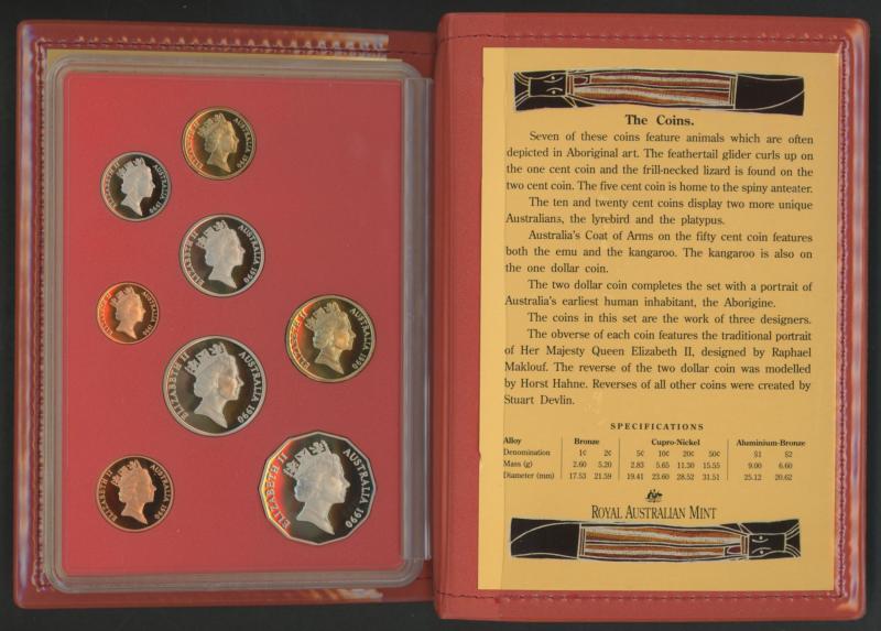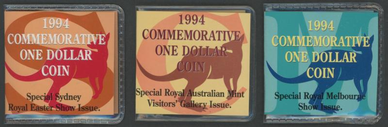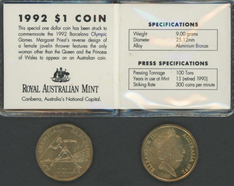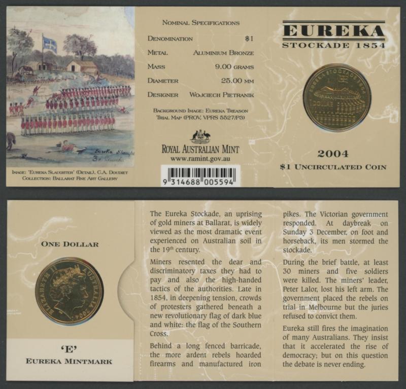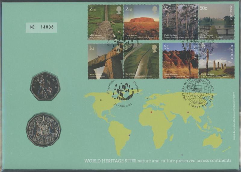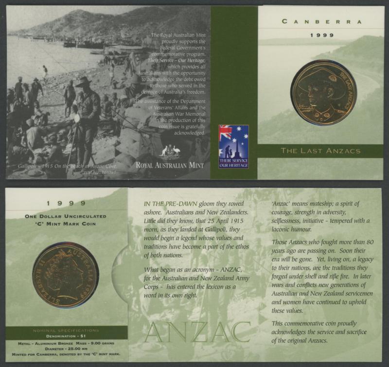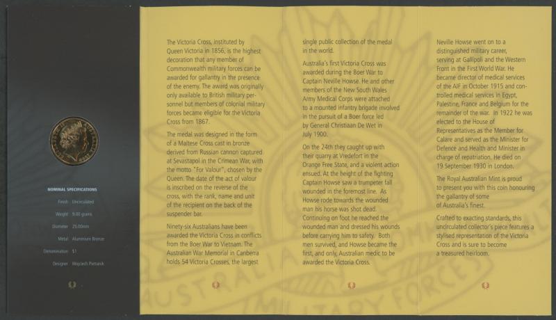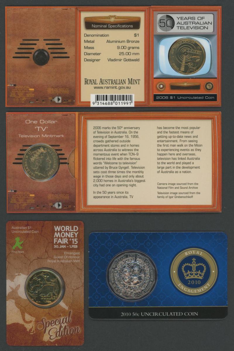 Coat of Arms (with GB 50p) in World Heritage PNC, 2010 Royal Engagement in card; $1 cards/packs including 1992 Olympics x5, 1994 RAM Visitors Gallery x6 Sydney Show x3, Melbourne Show x1, 1999 Anzacs mintmark 'C' x3, 2000 Victoria Cross, 2004 Eureka