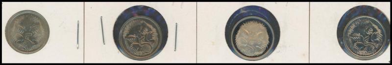 2c (8) with Proof 1982 & 84; 5c (14) with Proof 1990 & 93; 10c (13) with 1966 x3, Proof 1982, 84, 90, & 93; 20c (20); 50c (13) with Proof 1984; $1 (48) with some mintmarks; and $2 (6) with Proof 1990; all appear to be Unc.