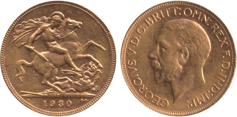 1930P KGV Small Head St George reverse, Marsh 269 (rated R), Spink 4002, aUnc. (Image1) (Image2)