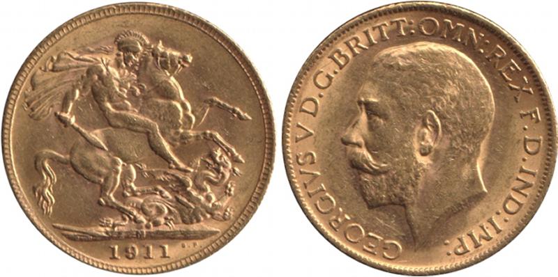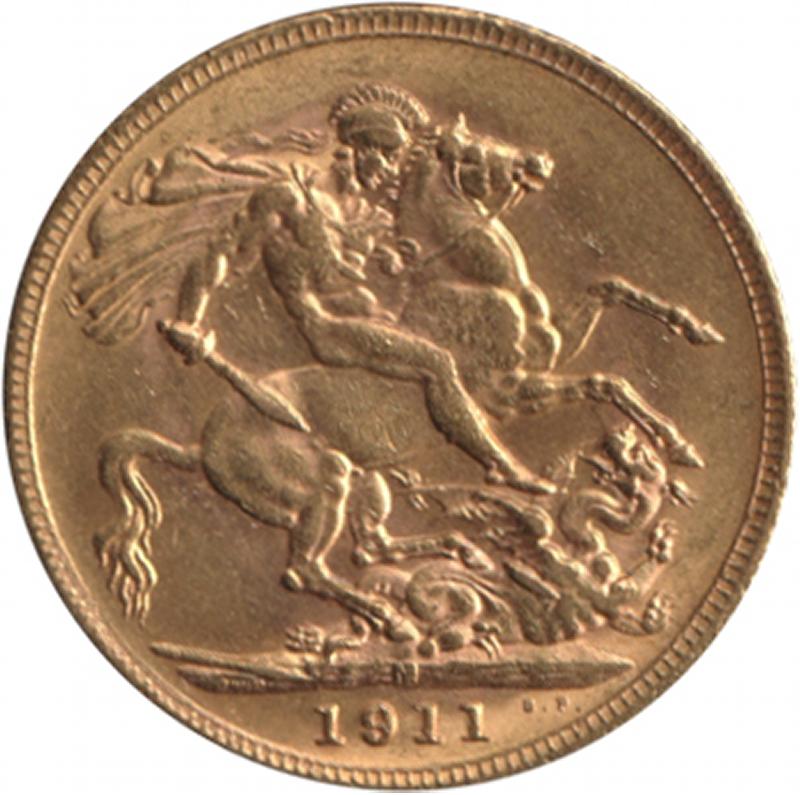 1911M KGV St George reverse, Marsh 229, Spink 3999, EF. (Image1) (Image2)