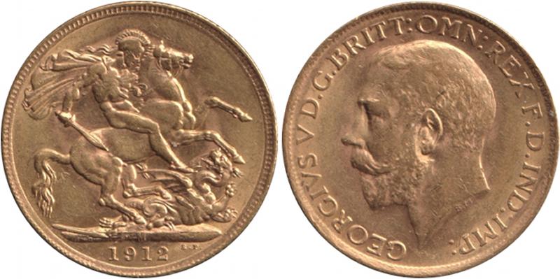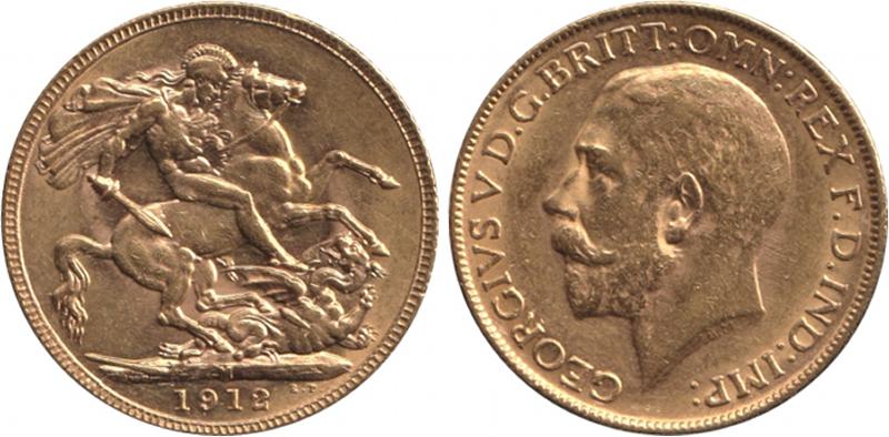 1912M KGV St George reverse, Marsh 230, Spink 3999, aUnc. (Image1) (Image2)