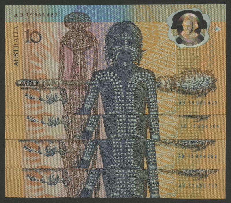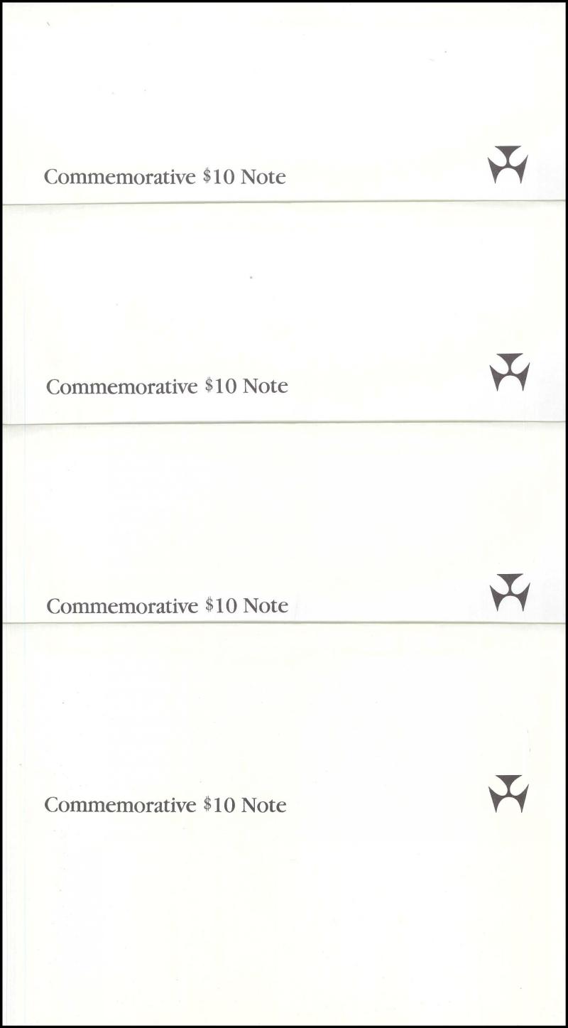 1988-1998 $10 polymer group comprising 1988 Johnston/Fraser Bicentenary 1st Issue R310a x4; 1993 Fraser/Evans R316a pair showing