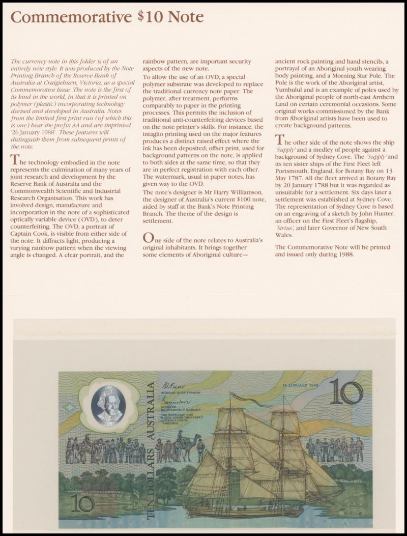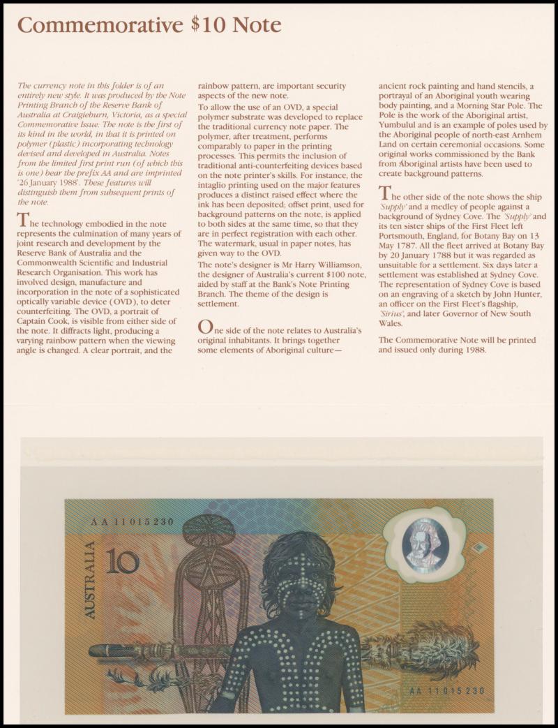 1988 $10 Bicentenary Johnston/Fraser dated note folder issue in RBA envelopes x22, Uncirculated.