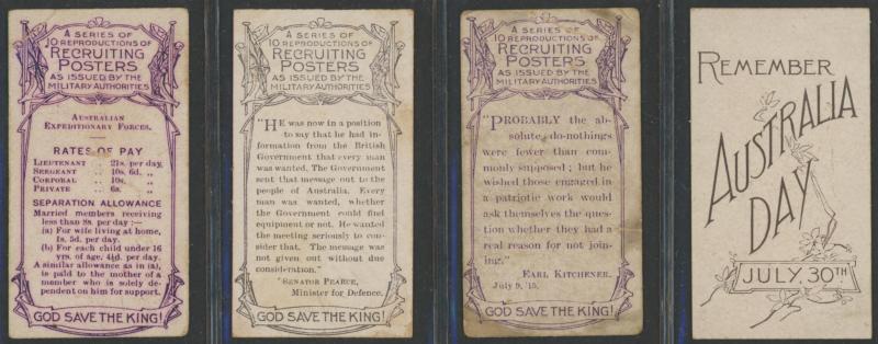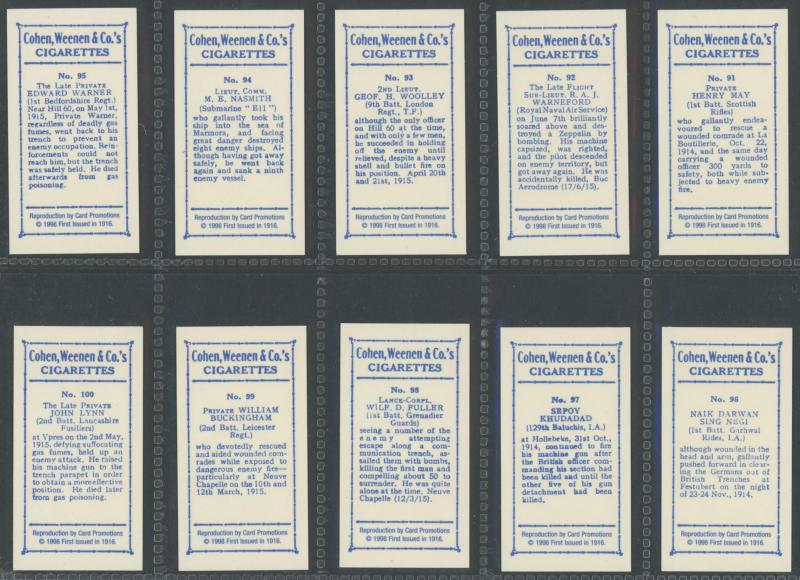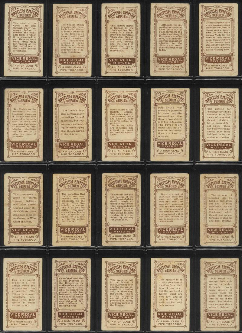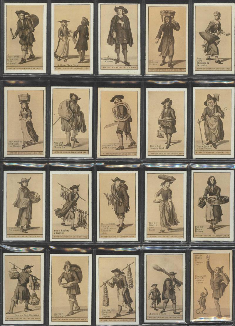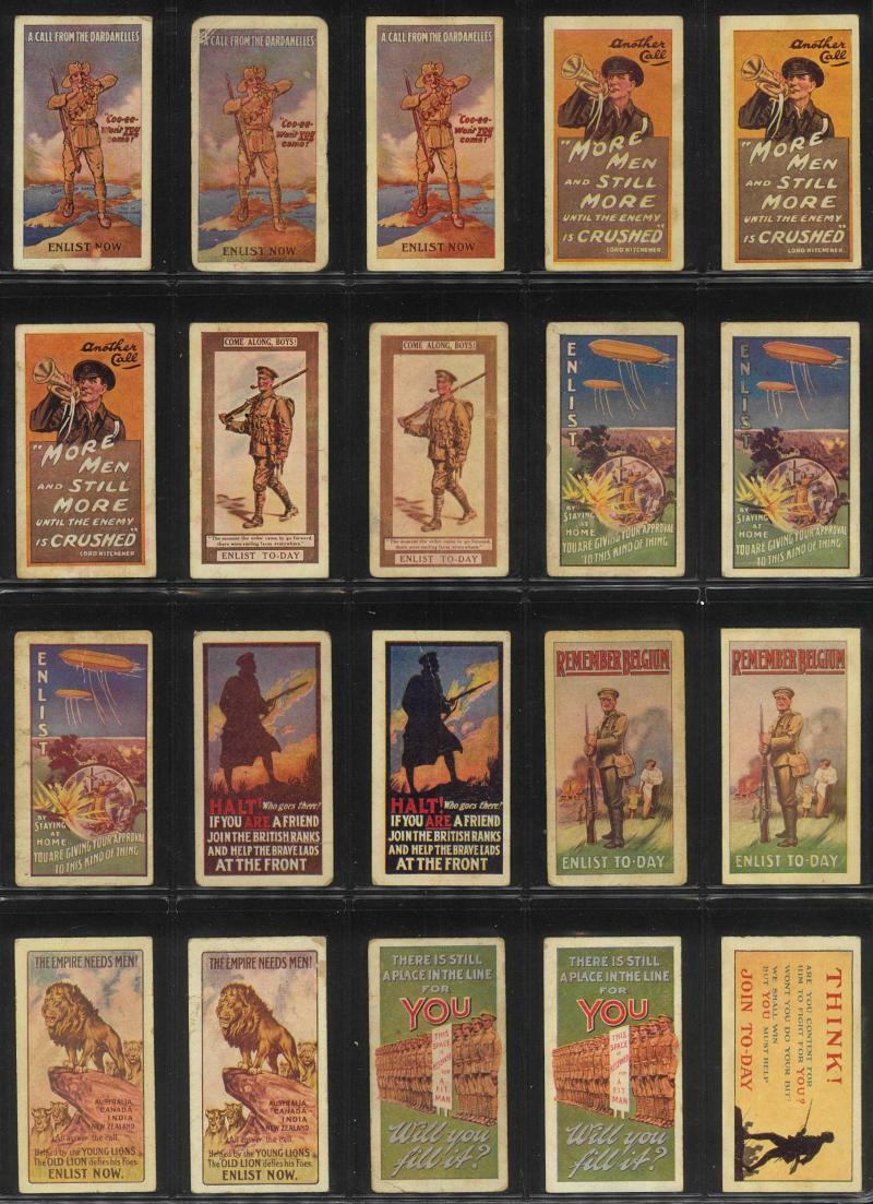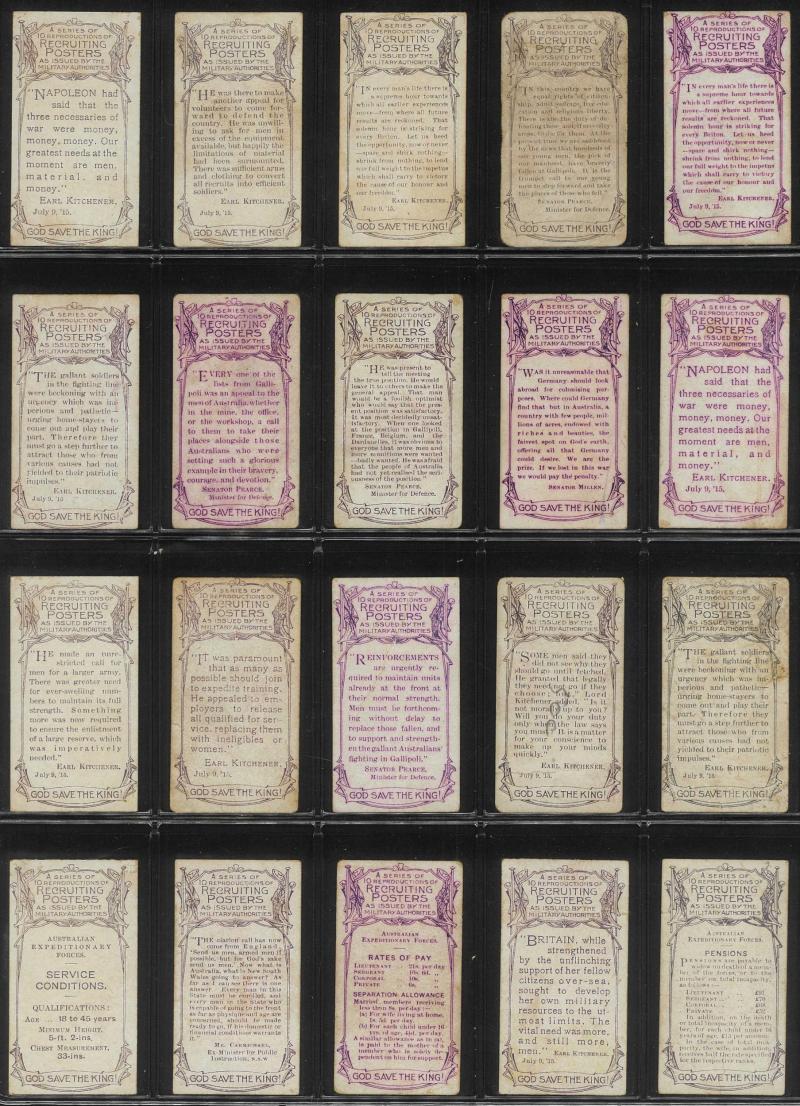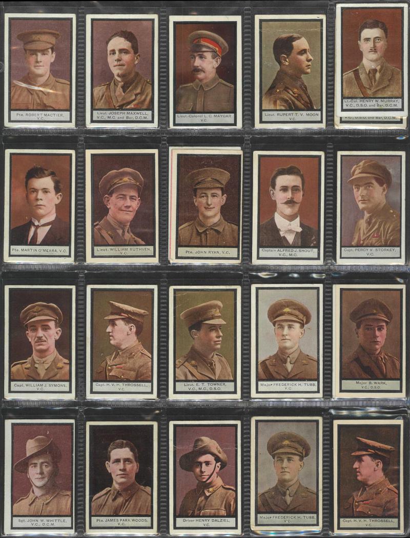 and Warships' [18/20]; 'Animals and Birds' [60] & [59/60]; 'Australian VCs and Officers' (118); 'Dogs' [16]; 'Great War Leaders and Warships' [34/60]; 'Natives of the World' [22/25]; 'Street Criers of London' [60]; 'Views of Victoria' [31/32], mainly