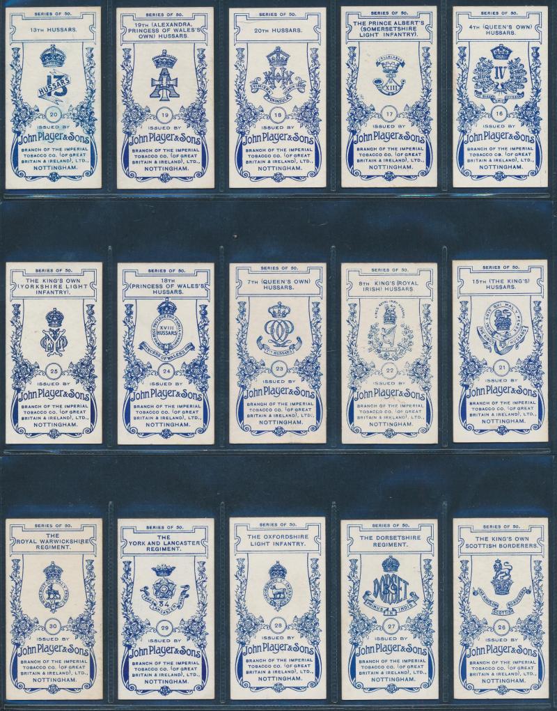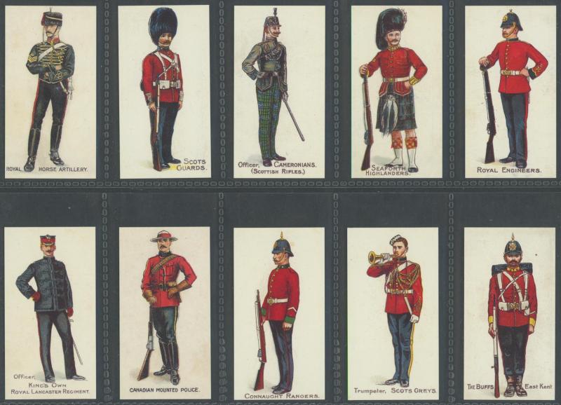 Regimental Colours and Cap Badges' [100]; 1912 'Regimental Uniforms' [50]; 1914 'Regimental Uniforms' [100]; 1915-16 'Polar Exploration' (1st & 2nd series) [50]; 1924-25 'Army, Corps and Divisional Signs 1914-1918' [150], mainly Fine/Very Fine. Cat