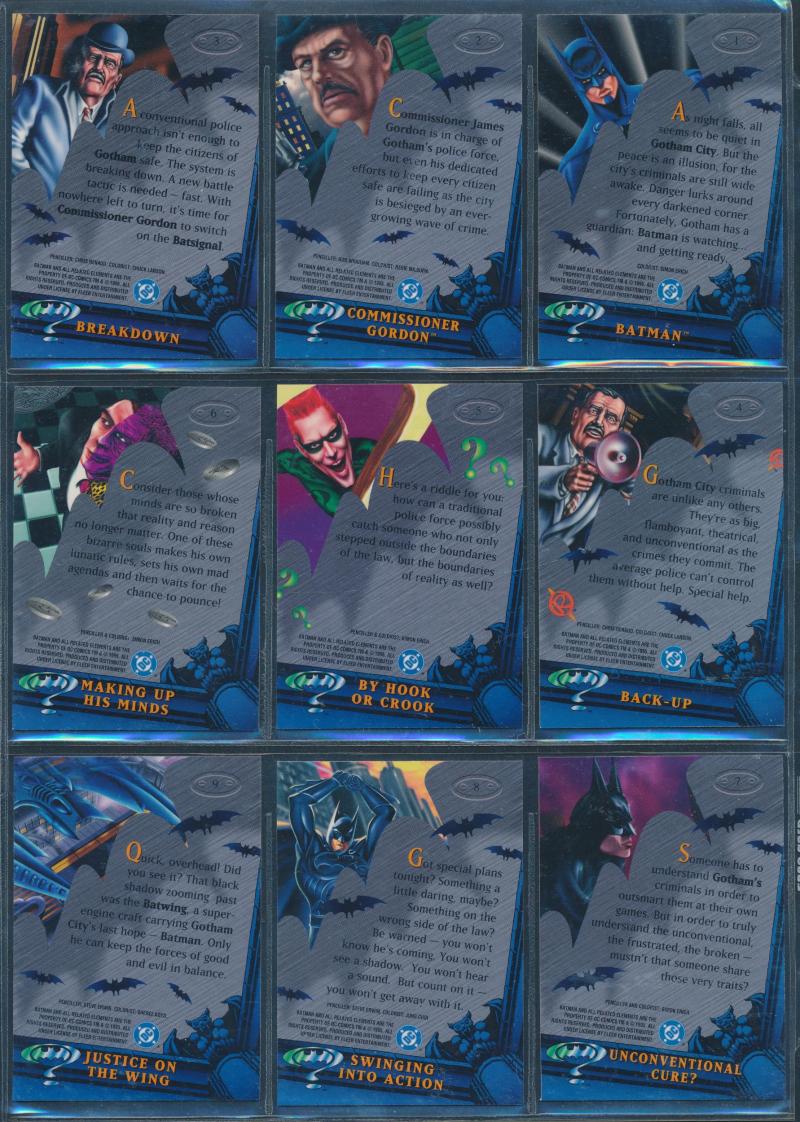 Batman 1989-97 collection in 4 albums, mainly complete sets & chase cards, mainly Fine/Very Fine.