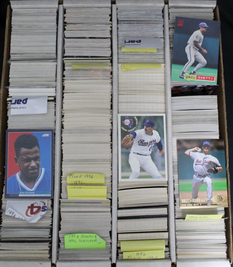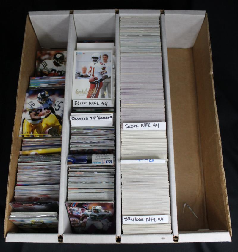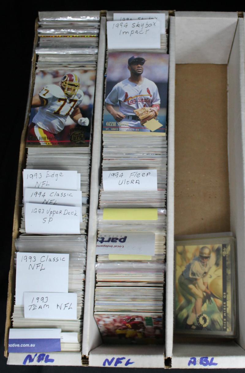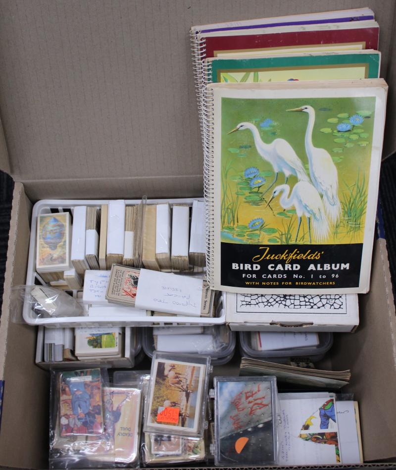 Collection 1930s-90s in 2 cartons, including few swap cards in 2 albums; AFL, soccer, basketball, Star Trek, Star Wars, WWII,