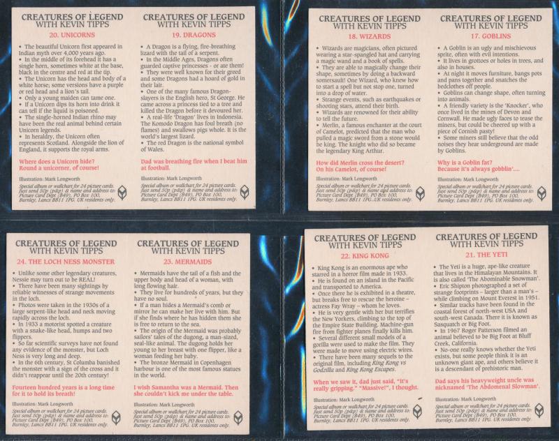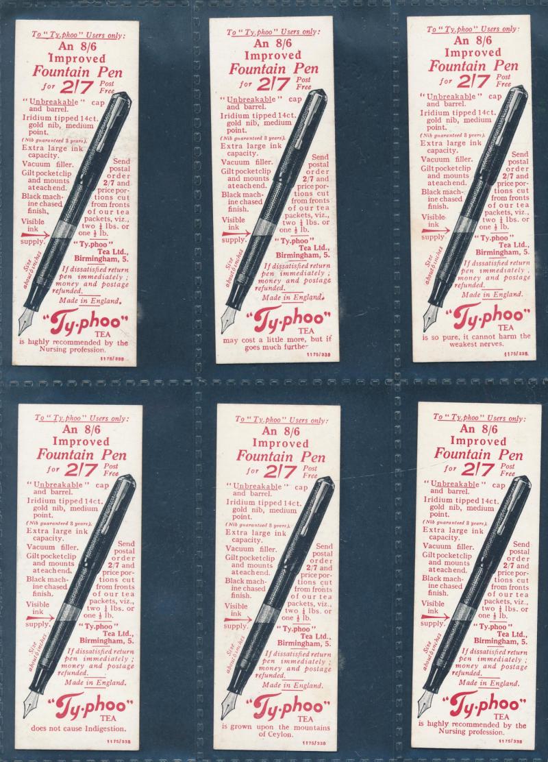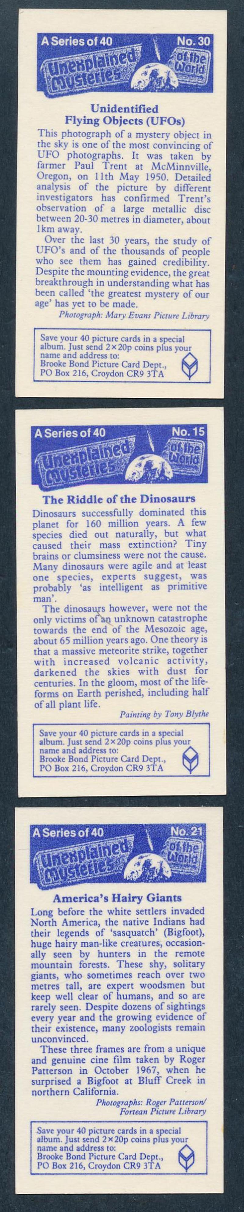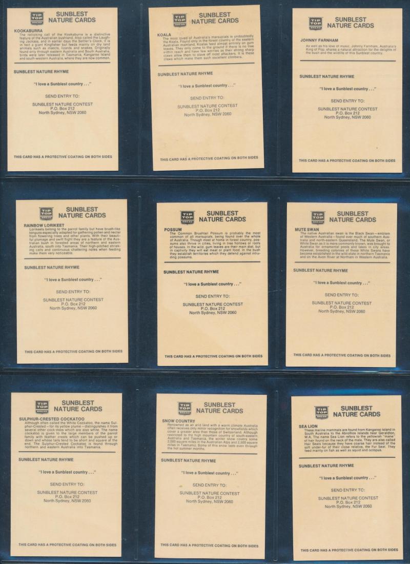 Kensitas, Lyons Tea, Malties, Pattreioux, Sanitarium, Shell, Sniders & Abrahams, Tuckfields Tea, Typhoo Tea, Victoria Gallery & Wills; includes 1989 Jiffi 'Karma Sytra' [64]; 1987 Brooke Bond 'Unexplained Mysteries' [50], mainly Fair/Fine. Inspection