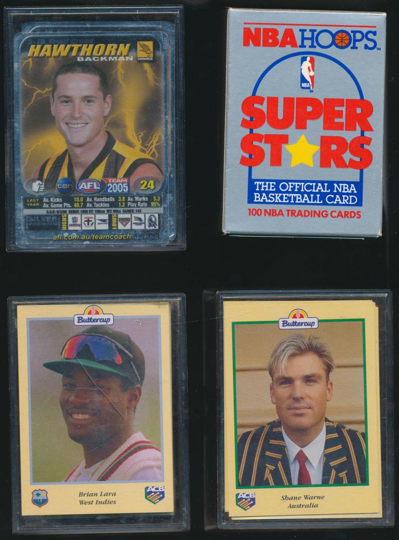 (73); cricket; basketball with Scottie Pippen jersey card; Olympics; F1, condition varies, Poor/Very Fine.