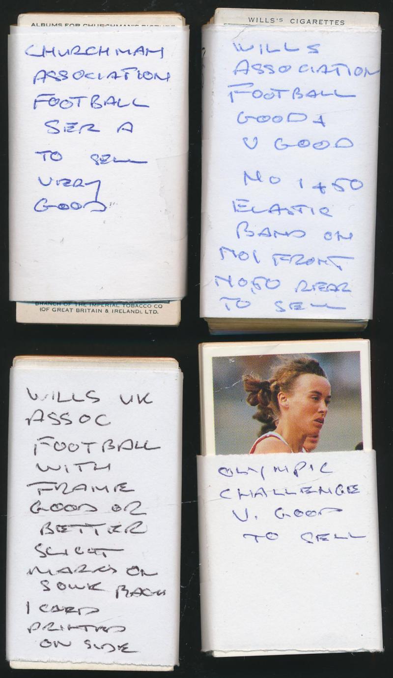 Morris & Sons, Churchman’s, Ogdens, and Wills ‘War Pictures’[50/50], ‘School Badges’ [25/25], J. Wix & Sons ‘Henry’ Series [150]. Inspection will reward.