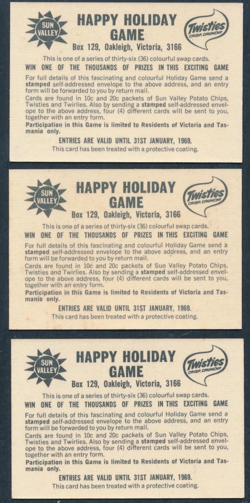 Twisties/Sun Valley 1969 'Happy Holiday Game' part set [31/36] with huge number of duplicates, mainly Fine/Very Fine (superb