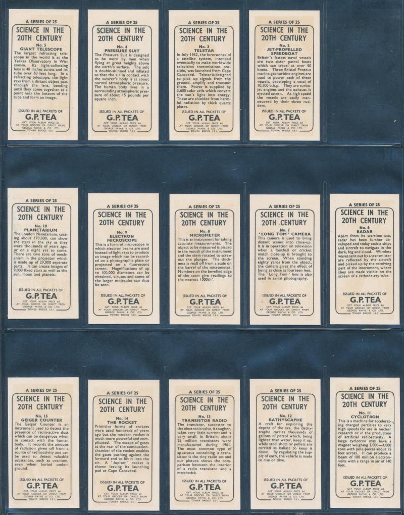 Large collection Large collection of mainly full and some partial sets with cards from G.P. Tea ‘Science in the 20th Century’