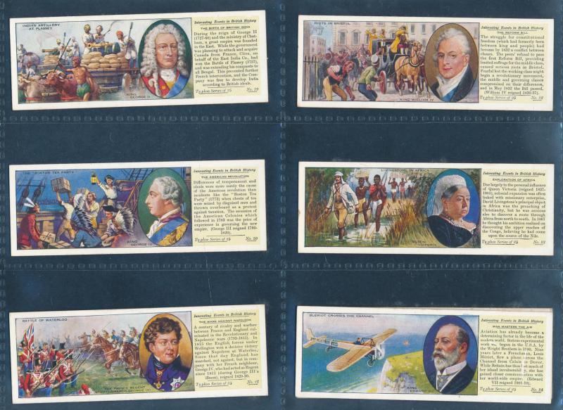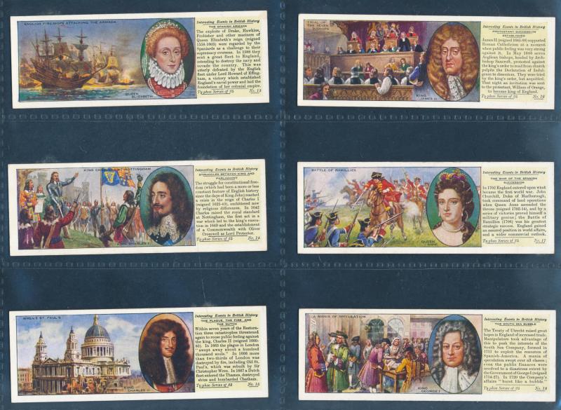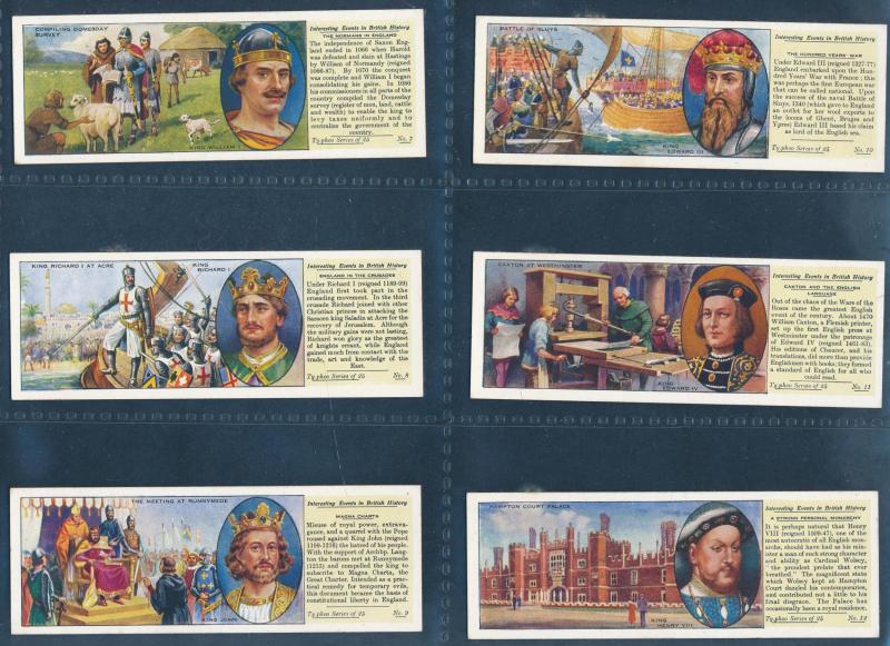 Collection in leaves, mainly full sets including Typhoo Tea 'Interesting Events in British History' [25], P.G. Tips 'Creatures of