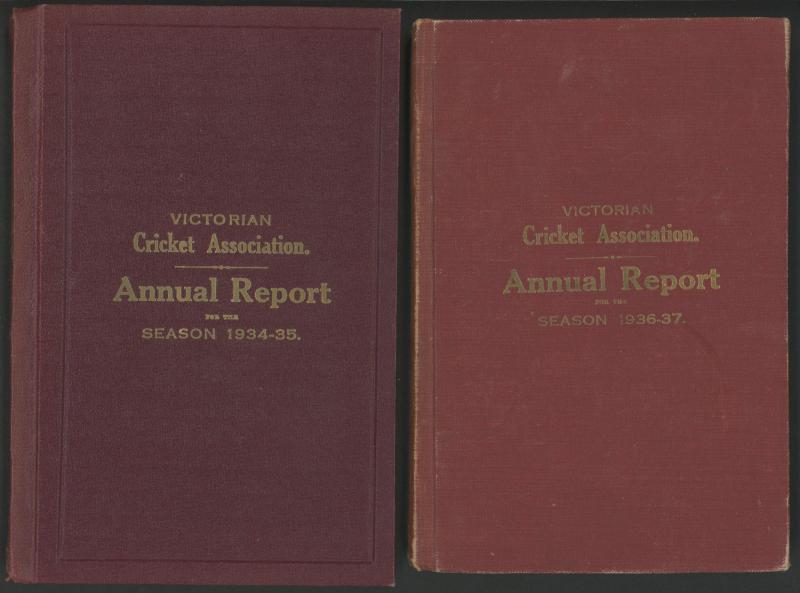 1990-91 & undated; Lady's Ticket for 1984-85; teaspoon; books (2) with 'Test Form At A Glance 1877-1953'; 'Victoria Cricket Association Annual Report' for 1926-27, 1934-35 & 1936-37, mainly Fair/Fine.