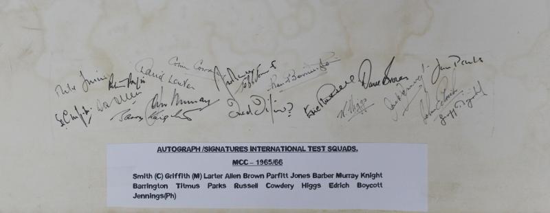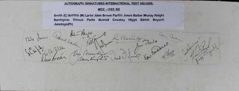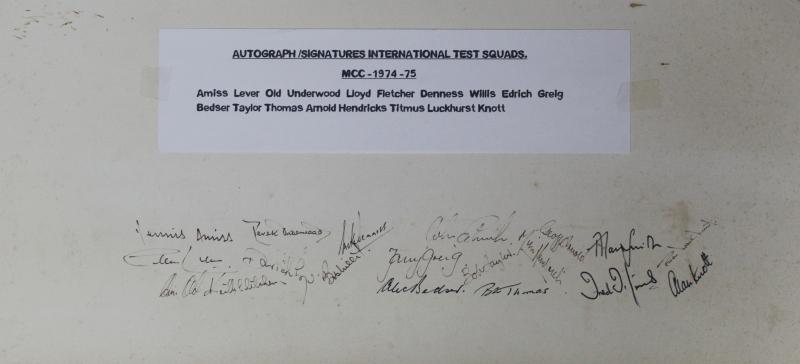 Indies, 1975-76; & 1968 2nd Wicket Competition, with a total of 143 signatures including Colin Cowdrey, Geoff Boycott, Fred Titmus, Alec Bedser, Bob Willis, David Gower, Sunil Gavaskar, Clive Lloyd, Graeme Pollock, Gary Sobers & Graham McKenzie.