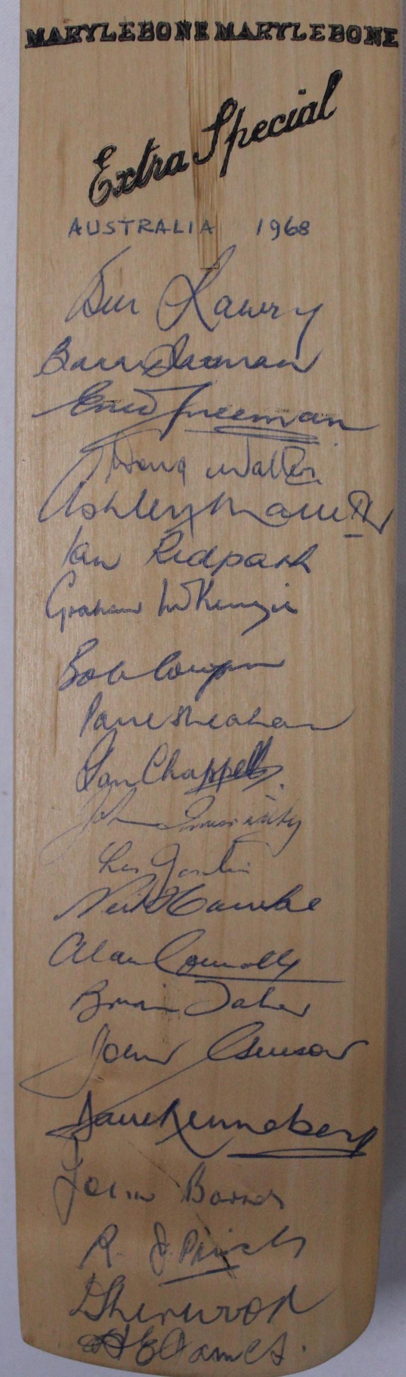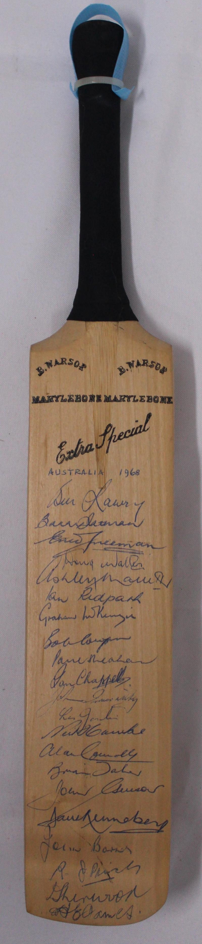 Autographs Miniature bats (4) including one signed by 1968 Australian team 21 signatures including Bill Lawry, Doug Walters & Ian