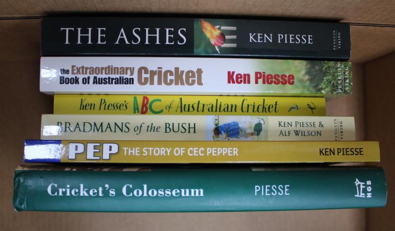 Books signed by author Ken Piesse including 'Cricket's Colosseum - 125 Years of Test Cricket at the MCG', 'Great Ashes Moments' &