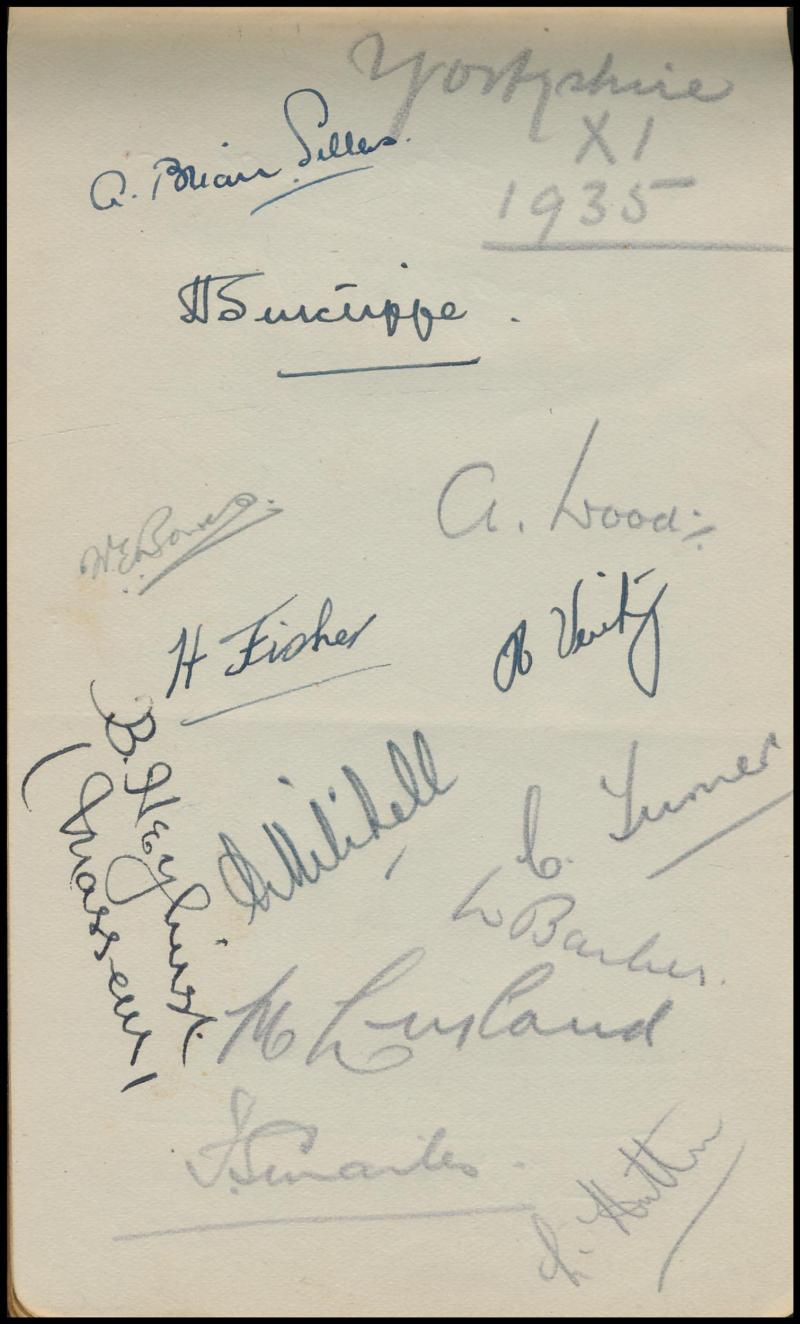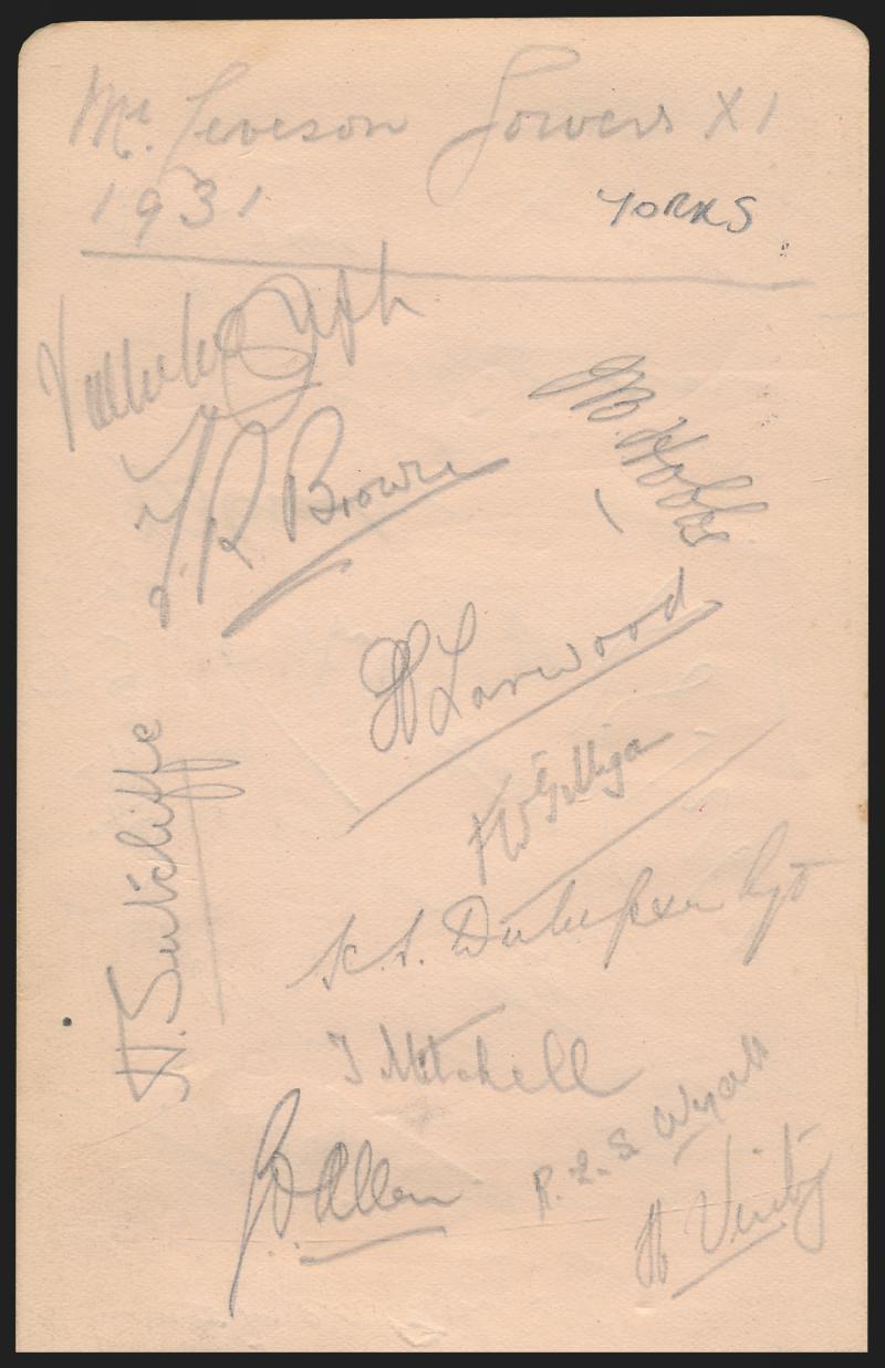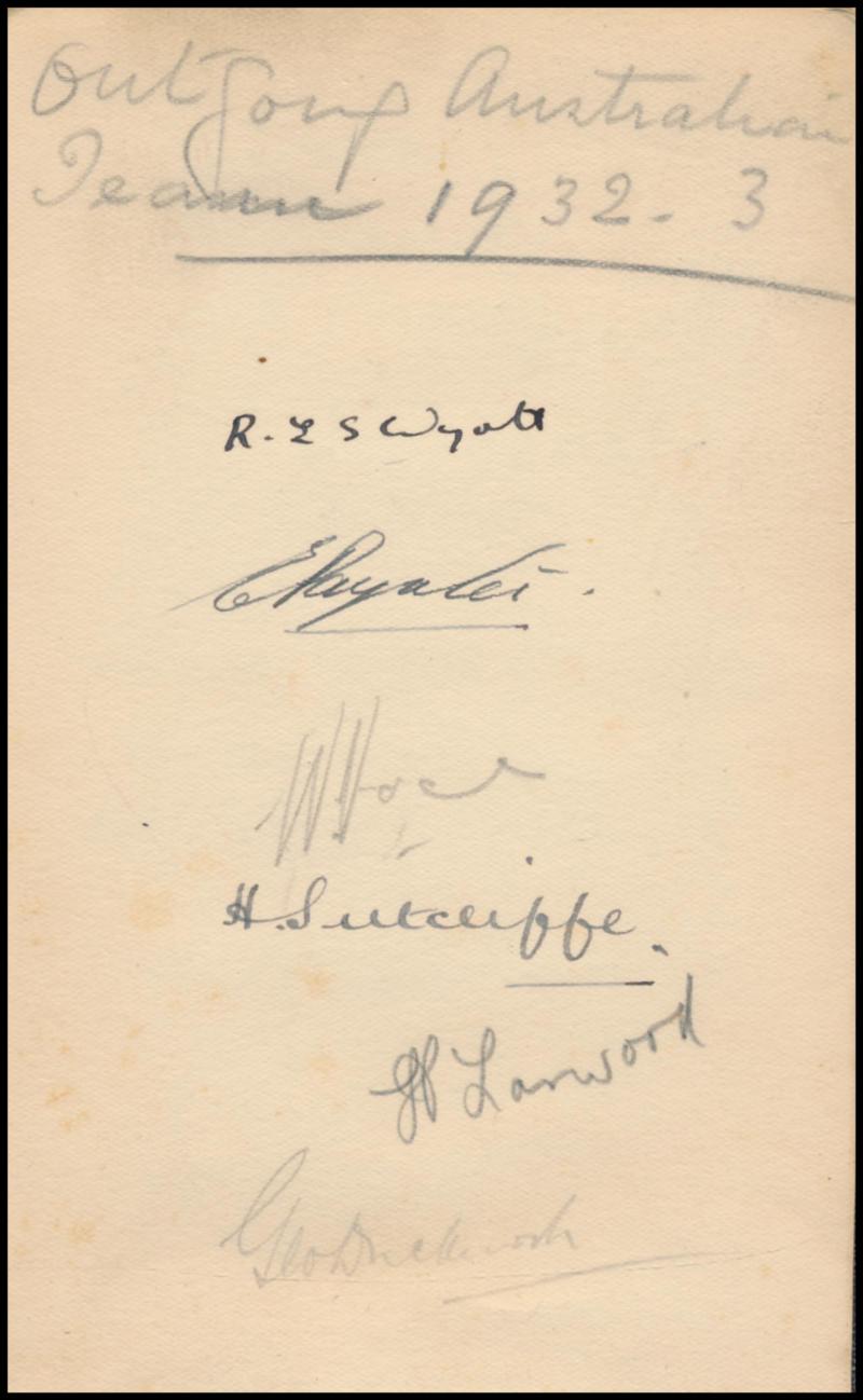 (6), 1932 India (12), 1933 West Indies (14), 1935 Yorkshire, 1933 England (9), 1936 Levison Gower (8) & also 1968 England (11), a total of 175 signatures including JB Hobbs, Harold Larwood, FR Brown, J Hardstaff, RES Wyatt, Bill Voce, mainly Fine. (Image1) (Image2)