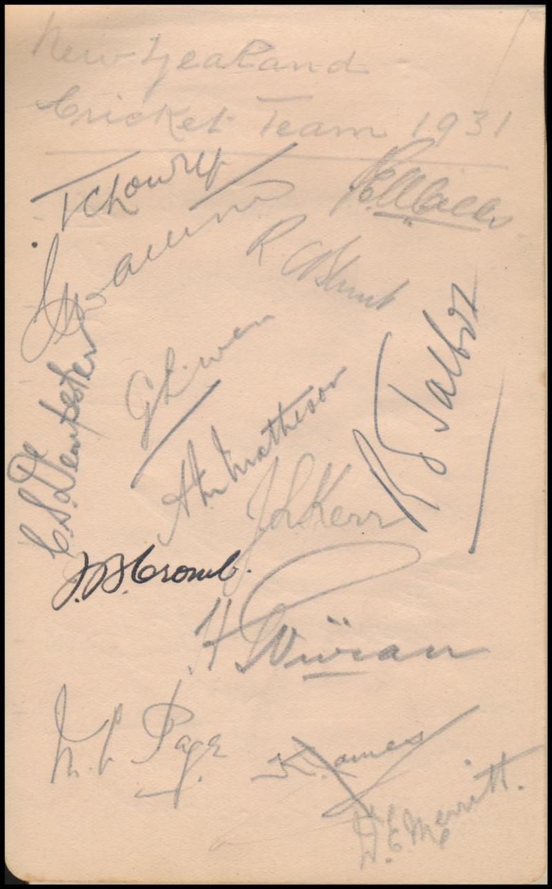 Autographs 1930s autograph book with various cricket teams with 1931 New Zealand (14), 1931 Levison Gower XI (11), 1932-33 England