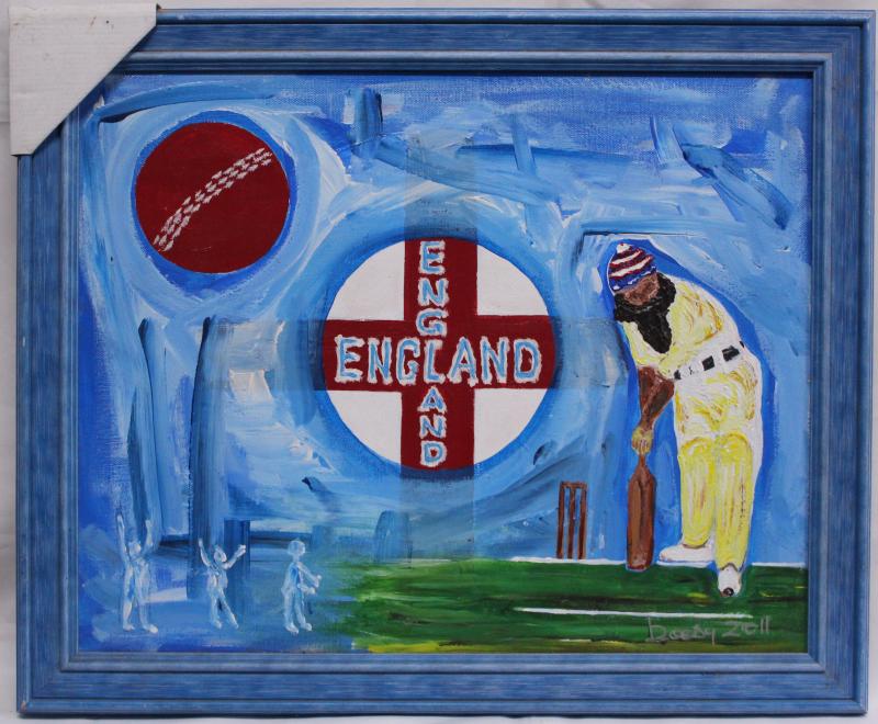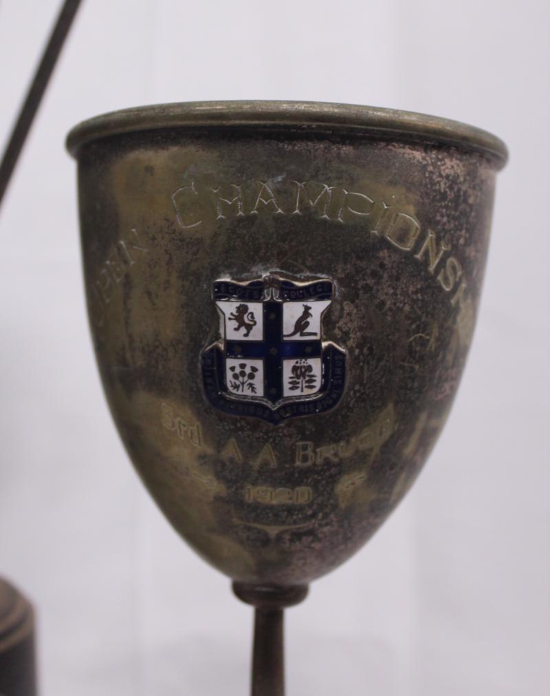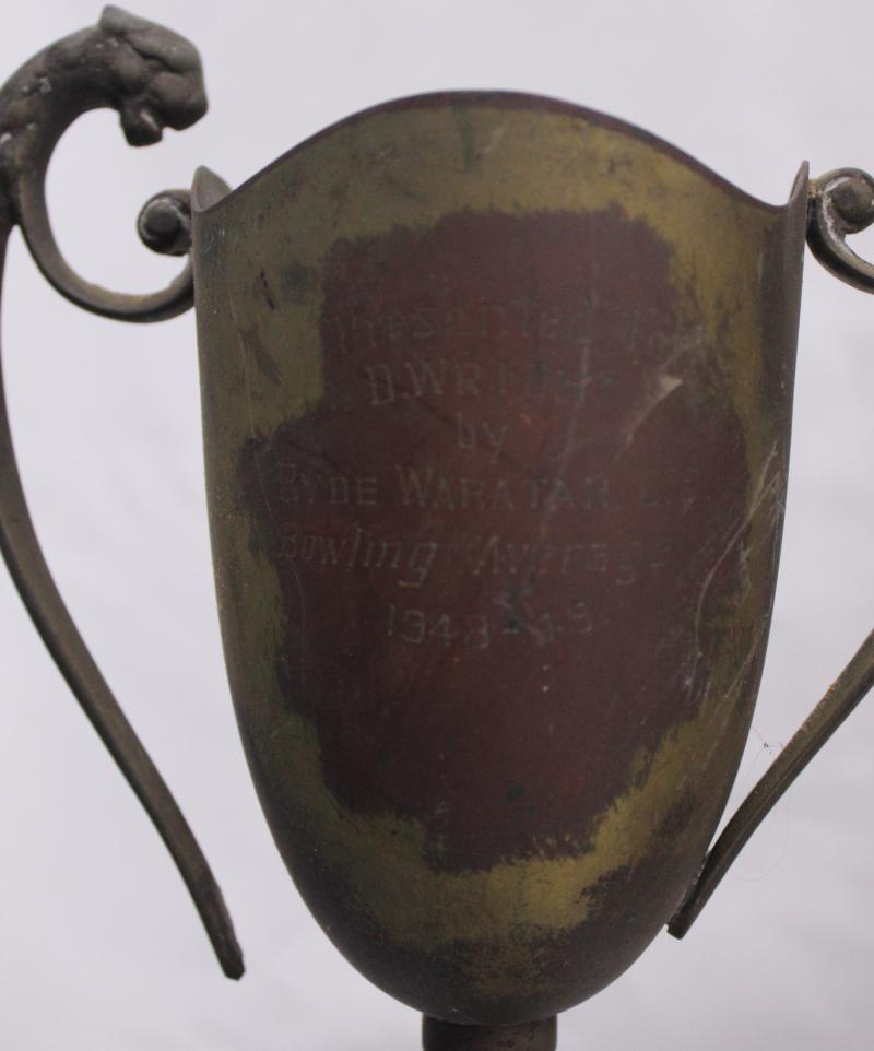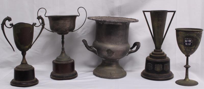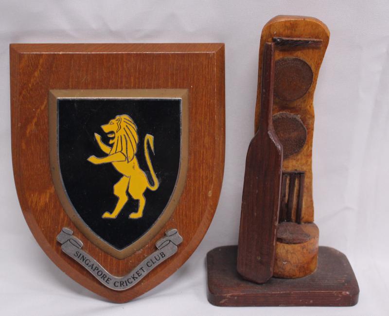SCG Home Room; old bottles unearthed when SCG Hill excavated; Singapore Cricket Club plaque; books (4); old tarnished trophies (5); paintings (3), mainly Fair/Fine. Ex SCG Room Attendant ('Roomy') Bob Barter. (Image1) (Image2)