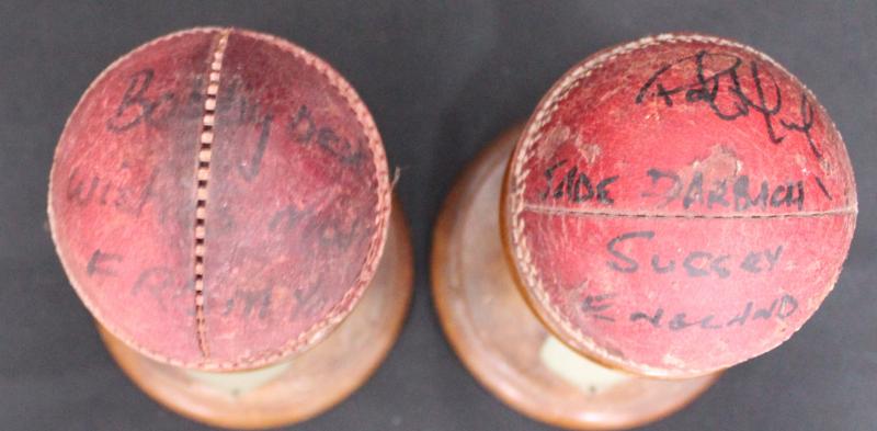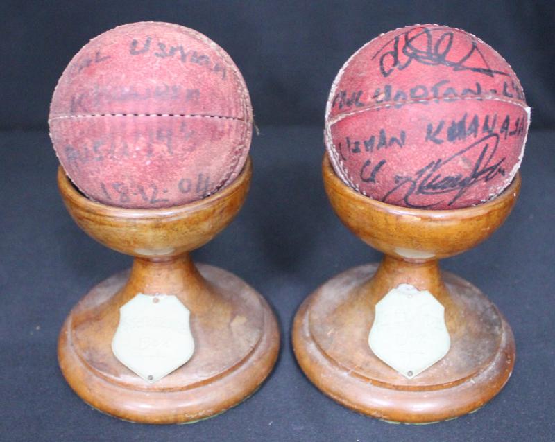 signed plate & drink bottle; Nathan Bracken plate & SCG name-plate; Usman Khawaja signed cricket balls (2) on wooden display stands, mainly Fair/Fine. Ex SCG 'Roomy' Bob Barter.