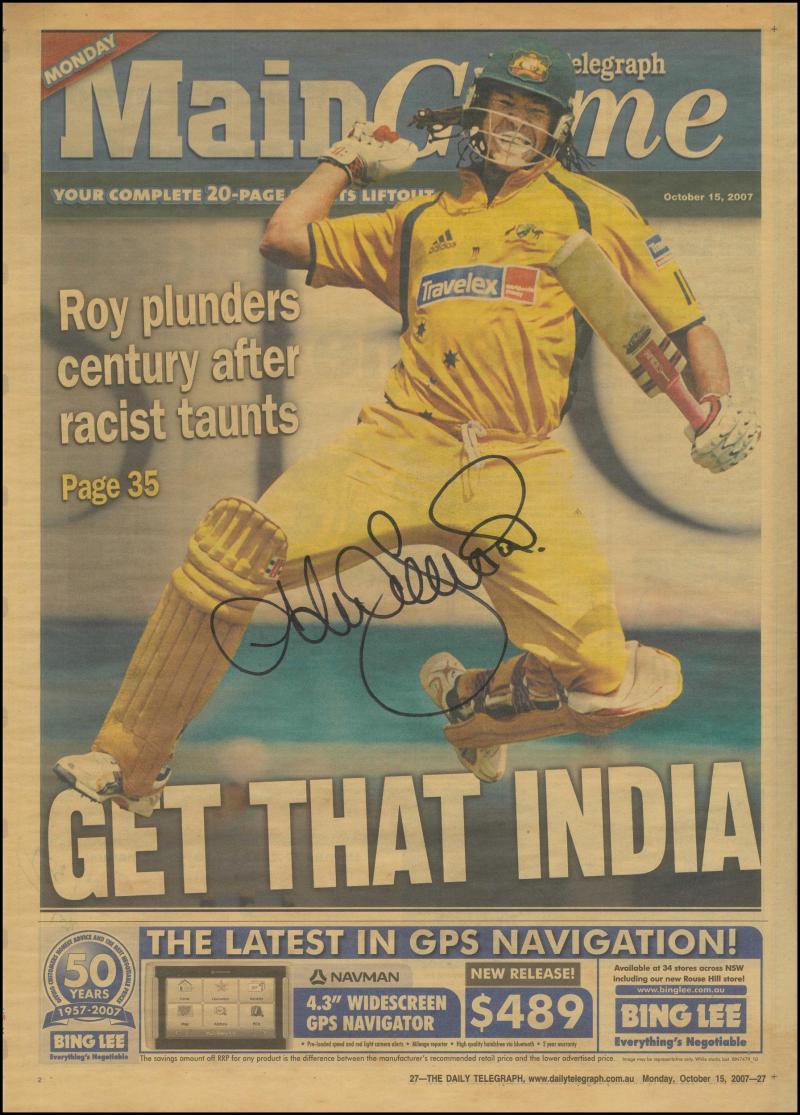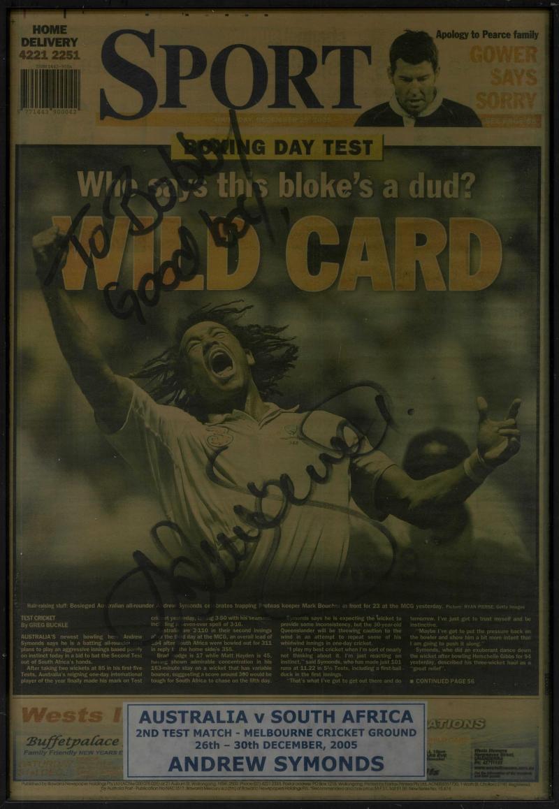 Balance of collection including Andrew Symonds signed plates (2), signed newspapers, drink bottle & SCG name-plate; Phillip Hughes