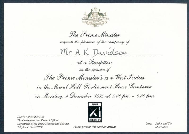 Davidson, noted 1977 Passport, menus & invitations; plus John Sands game 'Test Match', mainly Fair/Fine. (Image1) (Image2)