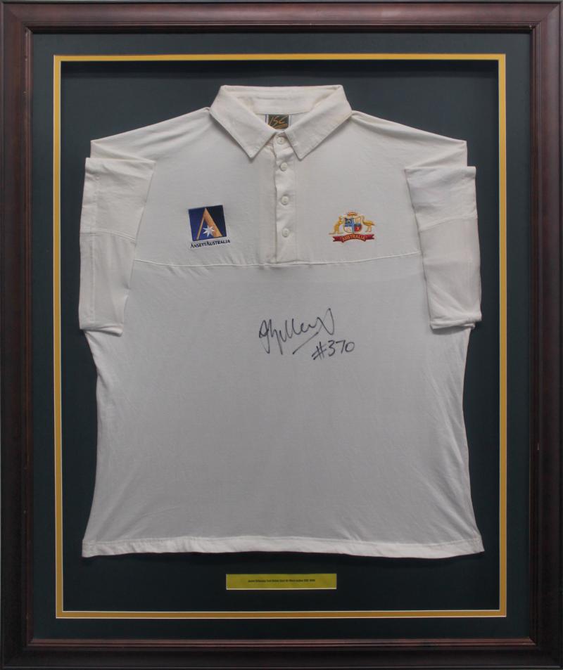 Australian Test Shirt with embroidered CA Coat-of-Arms, '370', and Travelex & FILA (with JG below) logos, match worn, endorsed on