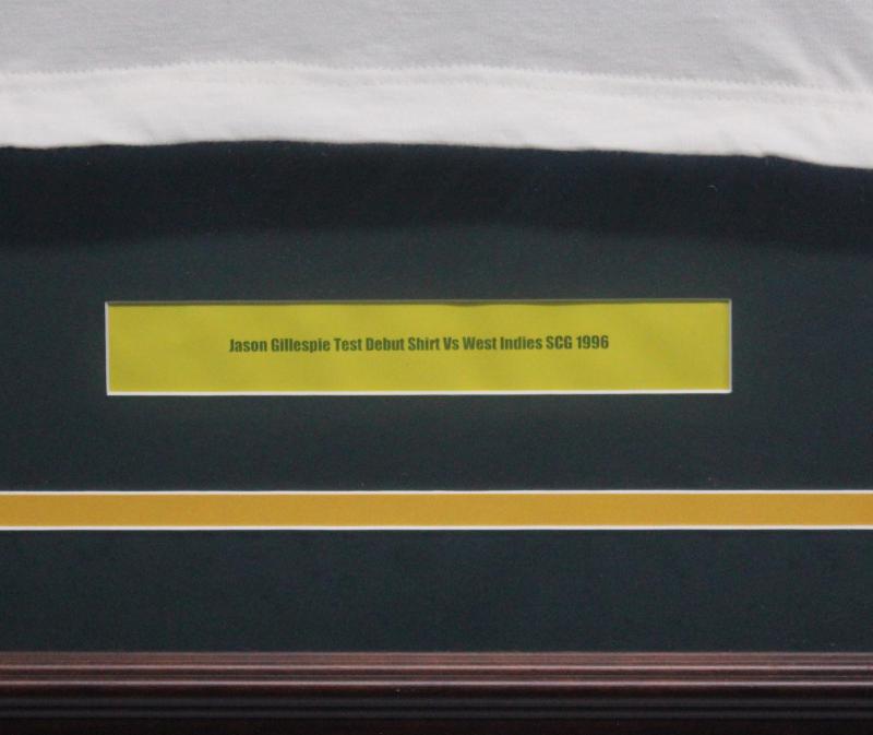 window mounted, framed & glazed, overall 92x112cm. [2nd Test v West Indies at SCG 1996. Jason took 2/62 & 0/27 and scored 16 not out]. Ex Jason Gillespie collection. (Image1) (Image2)