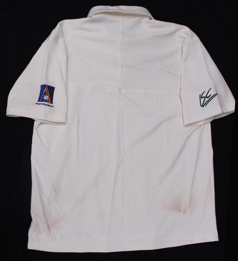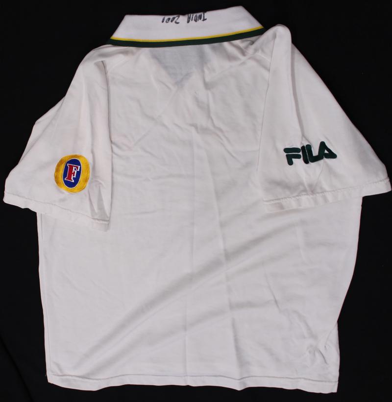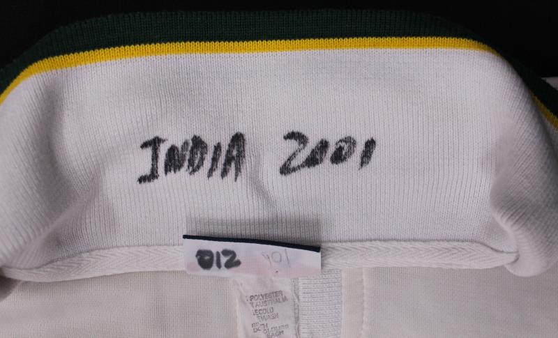 Australian Test Shirt with embroidered Australian Coat-of-Arms and Kelvinator & Fosters logos, match worn with 'INDIA 2001' on