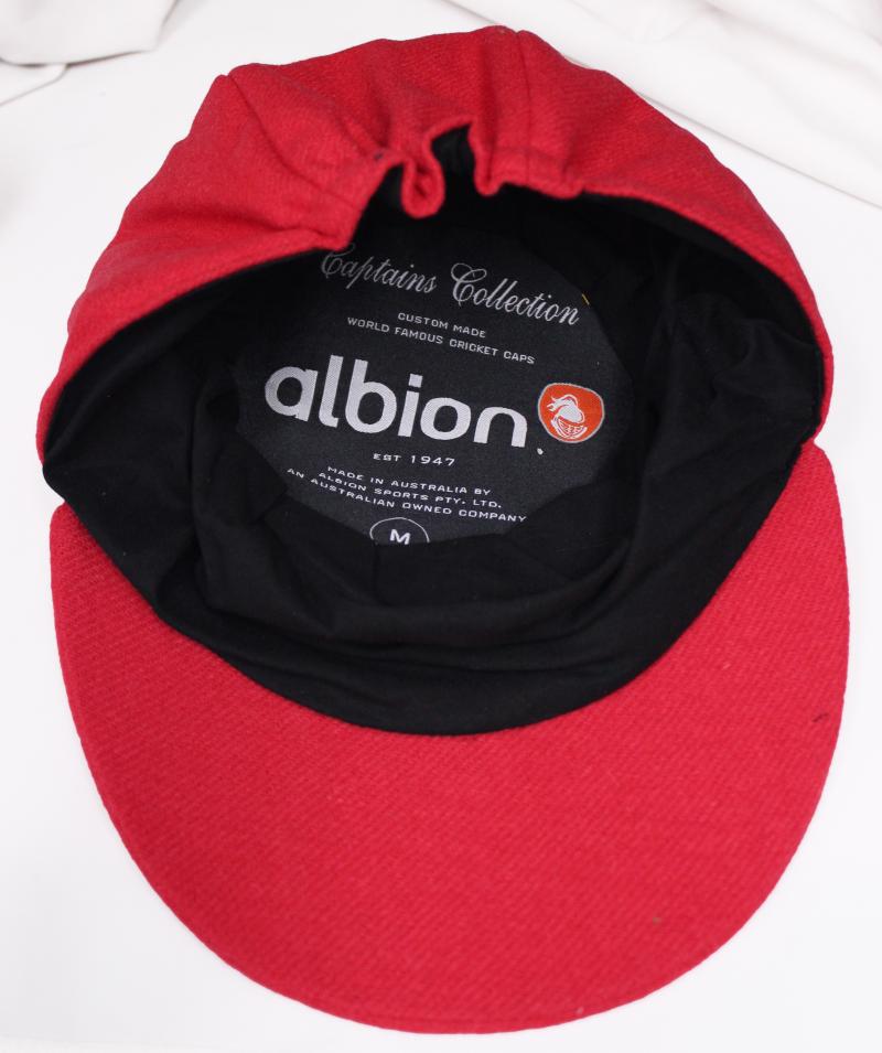 Jason's Gillespie's South Australian Cap red baggy cap with SACA logo embroidered on front, this one in as-new condition. Ex Jason