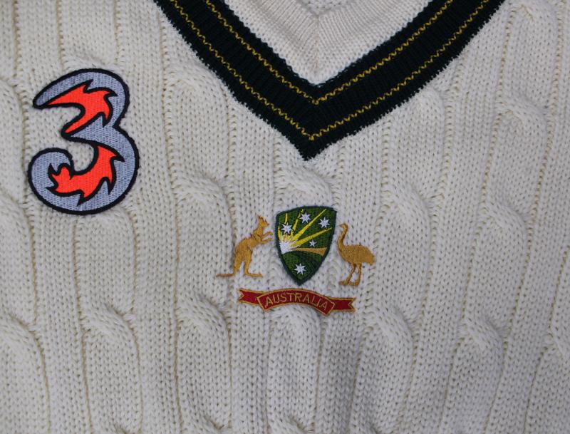 Australian Test Jumper long sleeved jumper with CA Coat-of-Arms & 3 logo on front, circa 2004-2006, superb match worn condition. Ex