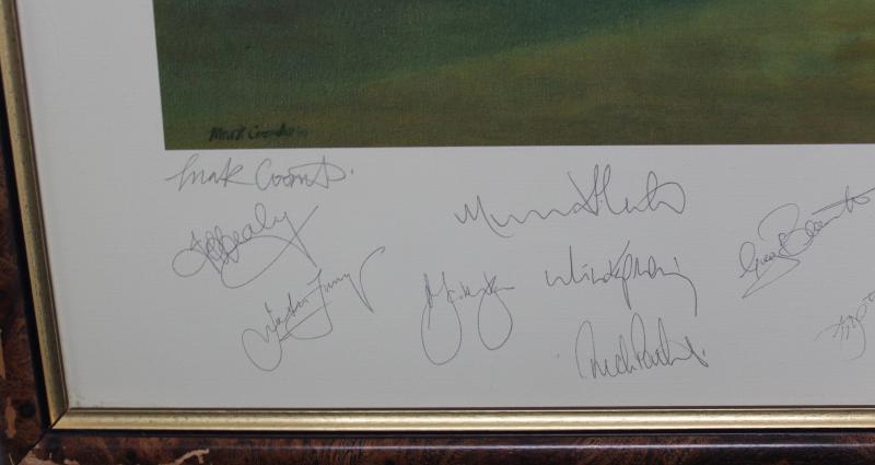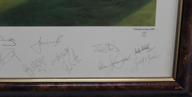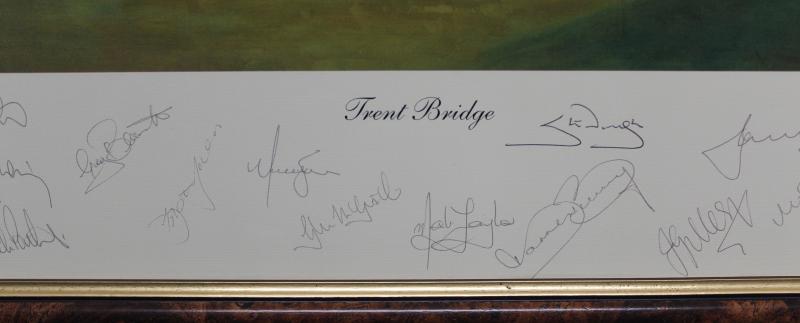 Autographs print 'Trent Bridge' by Mark Coombs, signed by the artist and numbered 289/650, signed by Australian team with 21