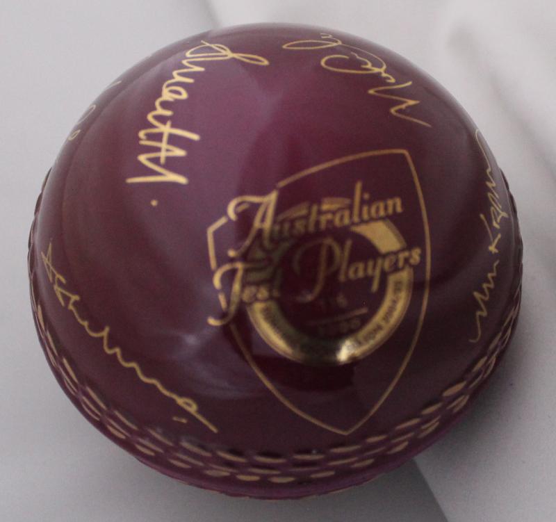 front 'INDIA vs AUSTRALIA 2004. AUSTRALIA 2-1' with 16 signatures including Ricky Ponting, Adam Gilchrist, Michael Clarke & Simon Katich. Ex Jason Gillespie collection. (Image1) (Image2)