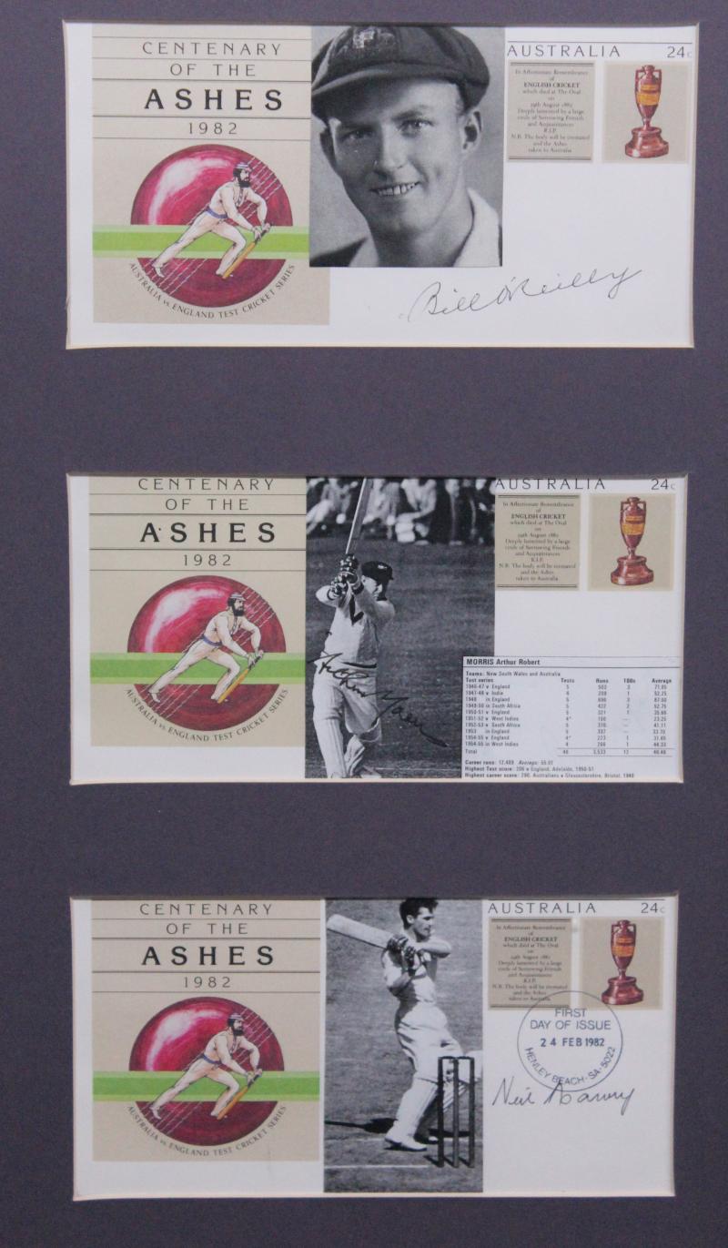 Display 'Australia's Team of the Century' display comprising 8 covers with 12 signatures - Don Bradman, Bill Ponsford, Arthur