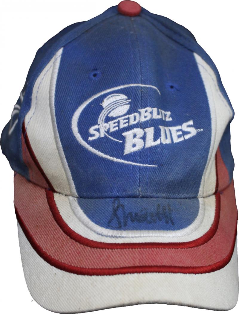 NSW Cap from 2006-07 Pura Cup Final Tasmania v NSW at Bellerive Oval, blue cap, baseball-style, with 'SpeedBlitz Blues' logo