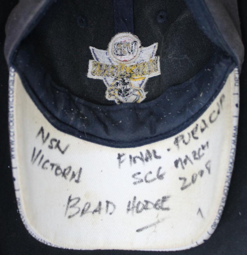 logo embroidered on front, match-worn, endorsed inside 'NSW VICTORIA, FINAL PURA CUP, SCG MARCH 2008, BRAD HODGE'. Ex SCG 'Roomy' Bobby Barter.