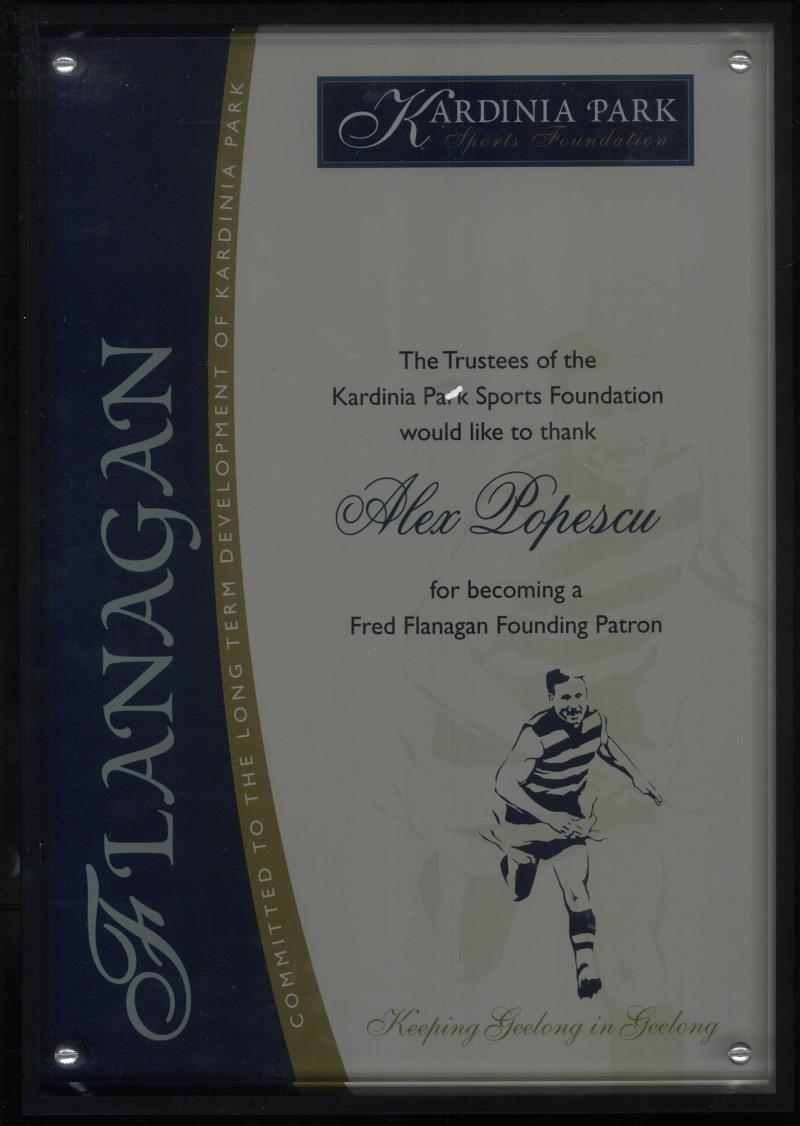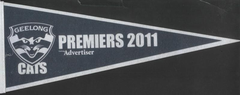 Scarlett; Royal Selangor Pewter Premiership Cup for 2011; plaques (3) 'Gold Cat Member', 'Geelong Football Club - Patron' & 'Fred Flanagan Founding Patron'; ephemera (27 items) with Carji Greeves Medal menus (8) & Hall of Fame menus (7); books (11)