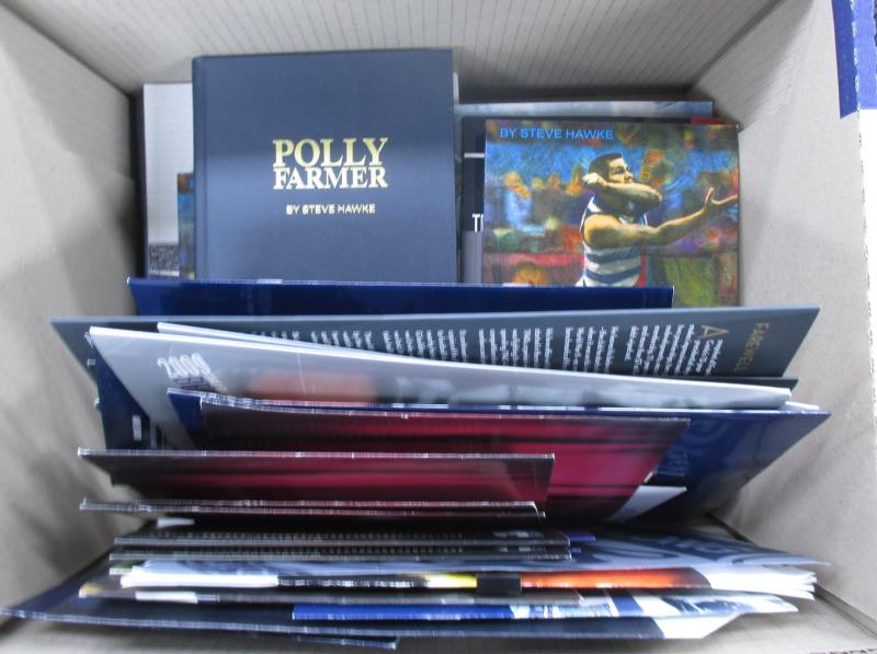 with 'Polly Farmer - A Biography' (3, all signed) & 'We Are Geelong' edited by Murray [Melbourne, 2009]; magazines (9); newspapers; DVDs (7); caps, scarves, beanies; 1960s football boots (as new), mainly Fine.
