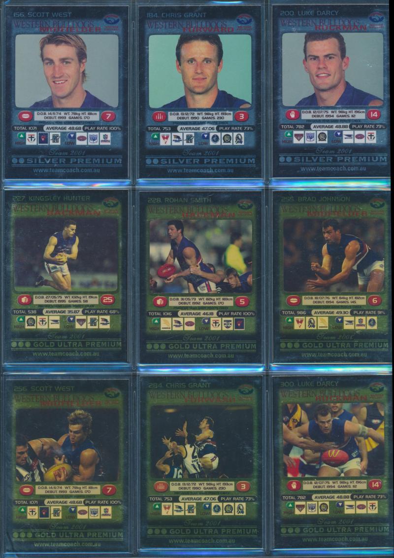 FOOTSCRAY: 1992-2020 football cards (1120+) in 4 albums, including Teamcoach base, silver & gold cards from 2001; plus folder of