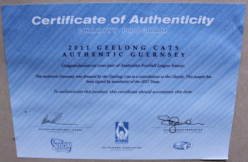 GEELONG: Geelong jumper signed by 2011 team (Premiership Year), with 40 signatures including Joel Selwood, Jimmy Bartel, Harry