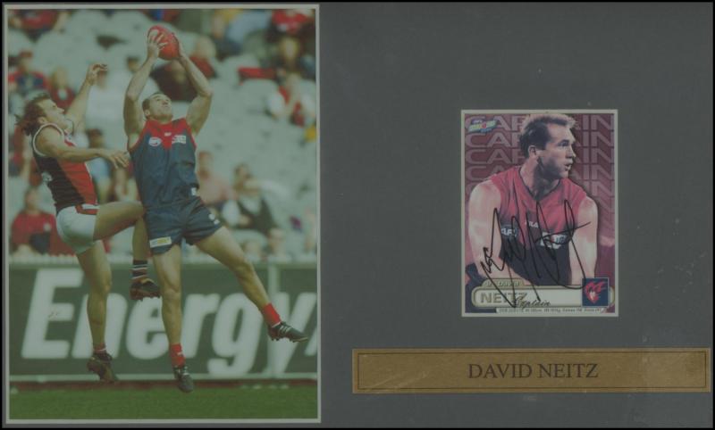 Manson, framed & glazed, overall 35x29cm. [Collingwood's 14th VFL Premiership. James Manson played 120 games for Collingwood 1985-1992, and 47 games for Fitzroy 1993-1995]. (Image1) (Image2)