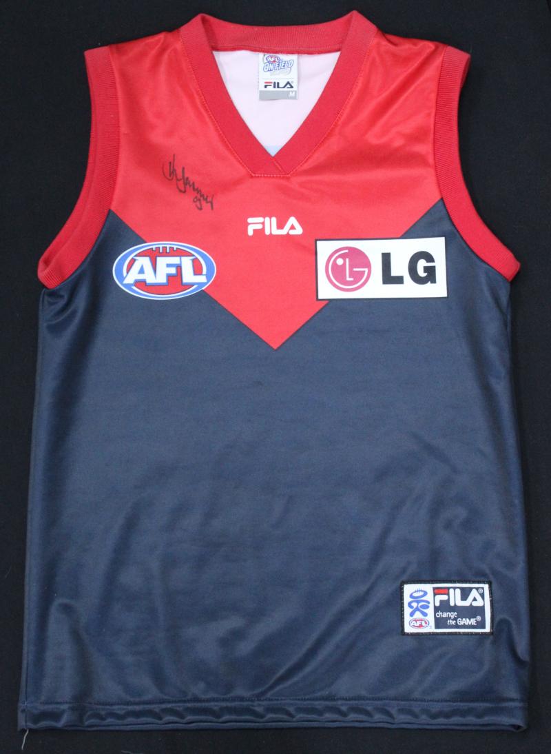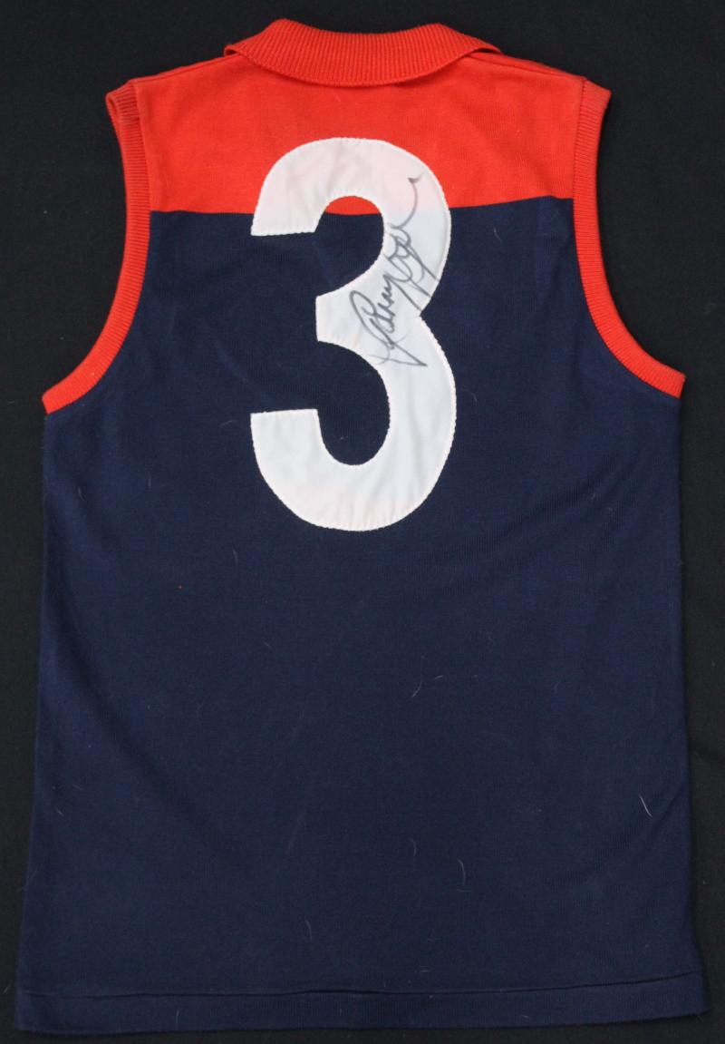 MELBOURNE: circa 1994 Melbourne jumper No.11 signed Jim Stynes & No.3 signed Gary Lyons; circa 2001 jumper signed Jeff Farmer; plus
