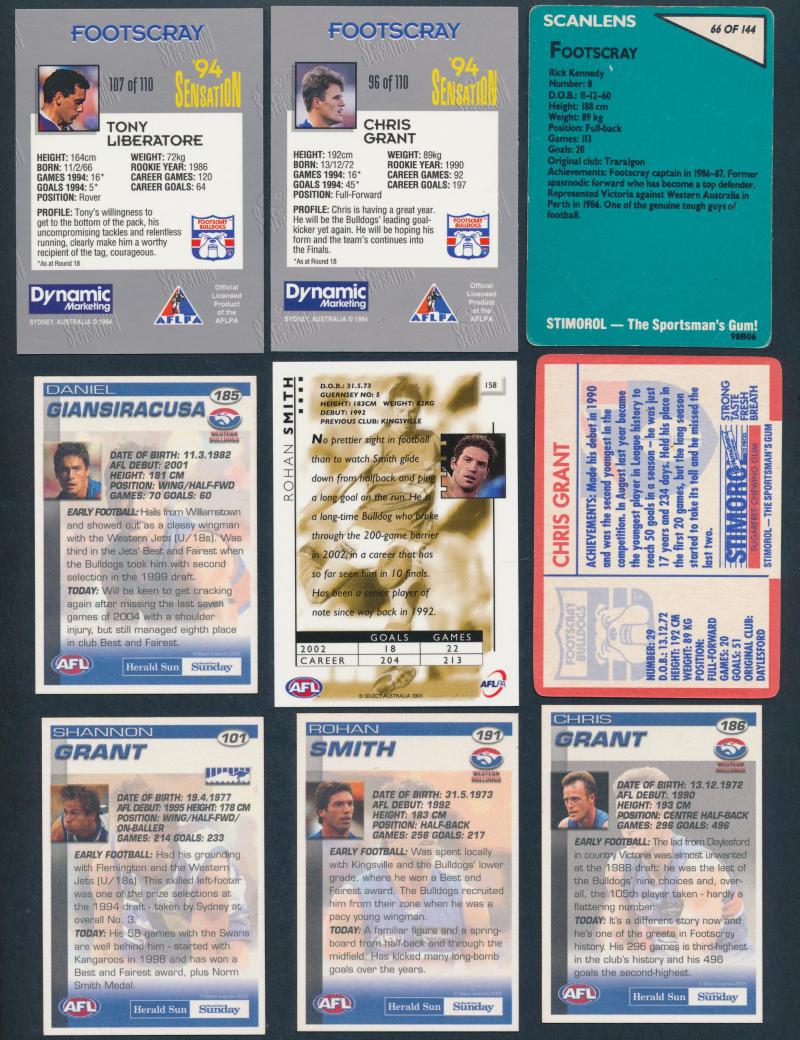 Whitten, Laurie Sandilands & Terry Wheeler; football jumper; 1970s-2020 football cards (85), mainly Fine.