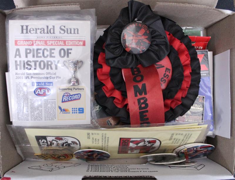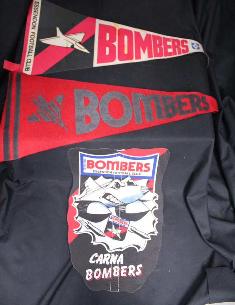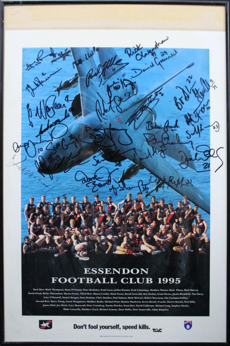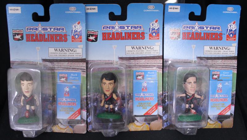 (11); cards (50+); c1960s 'Bomber Pilot' stuffed toy; Pro-Star Headliners figurines (3); 1995 Essendon poster with 27 signatures (laminated & framed), mainly Fair/Fine.