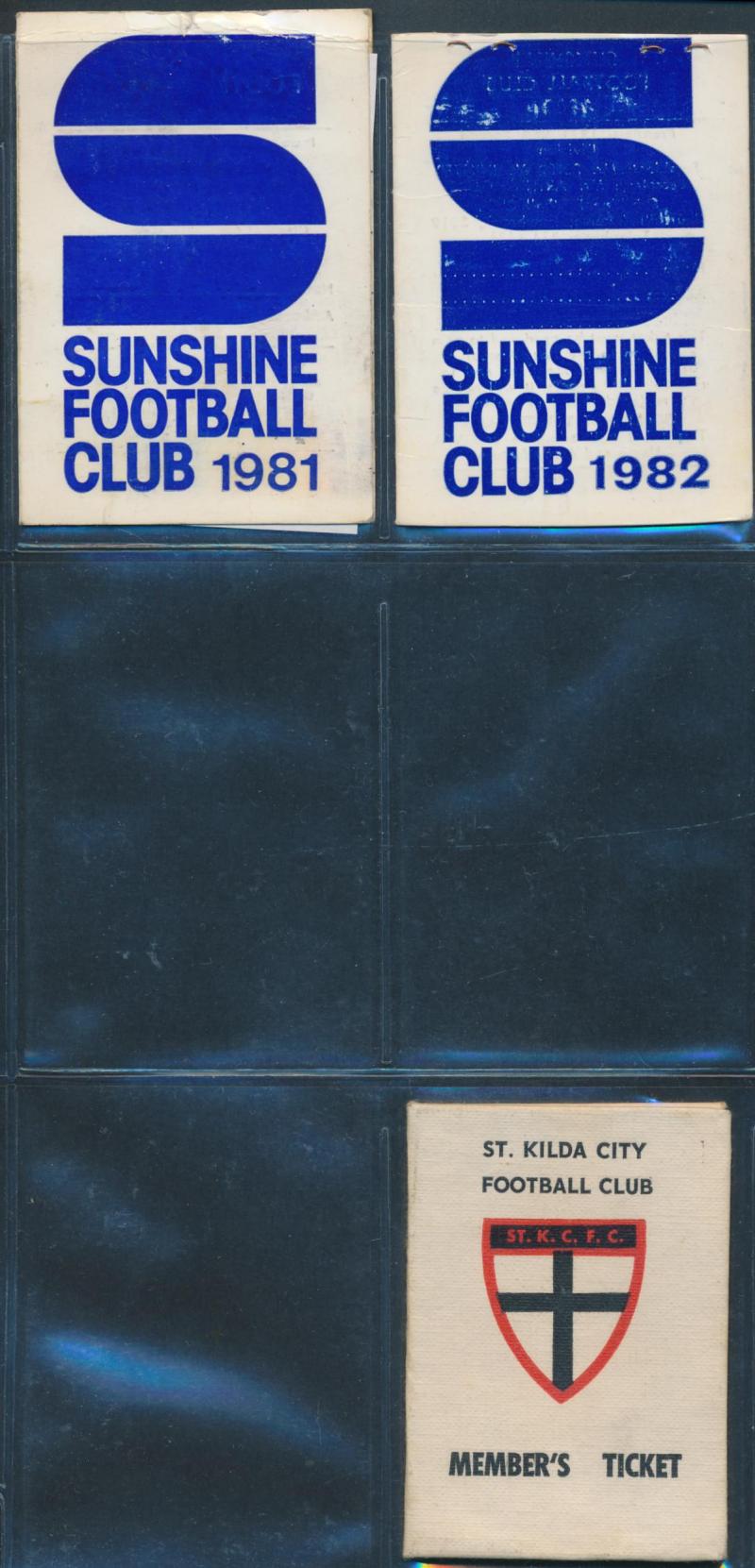 1976, 1977, 1978, 1979, 1980, 1981 & 1982; plus Social Membership Tickets for 1976, 1978 & 1980; also StKilda City Members Season Ticket for 1974, mainly Fair/Fine.
