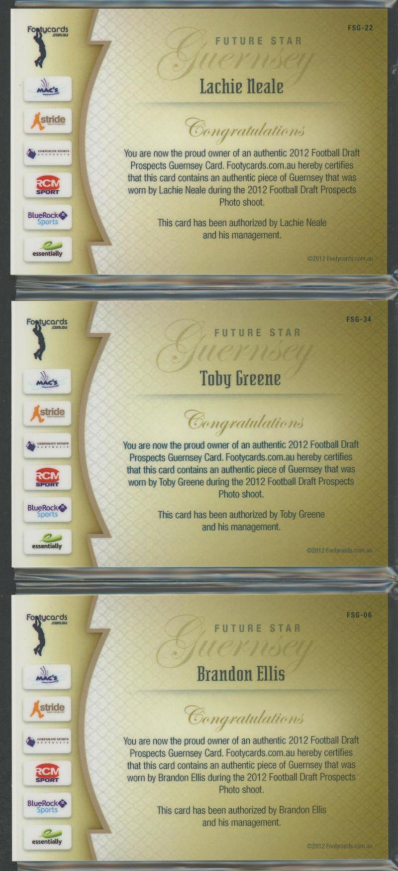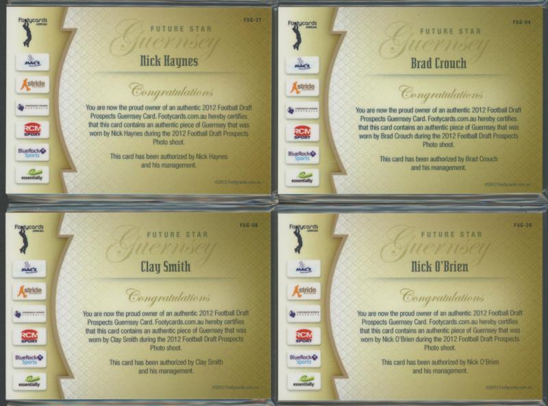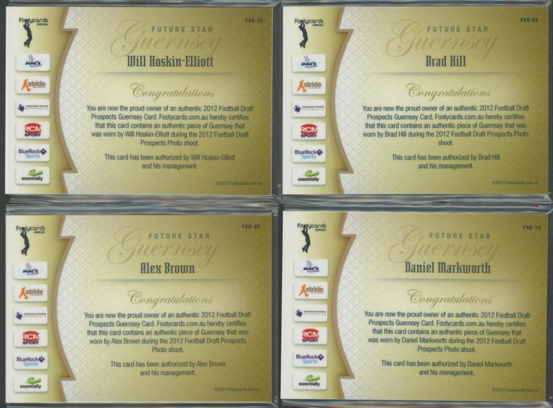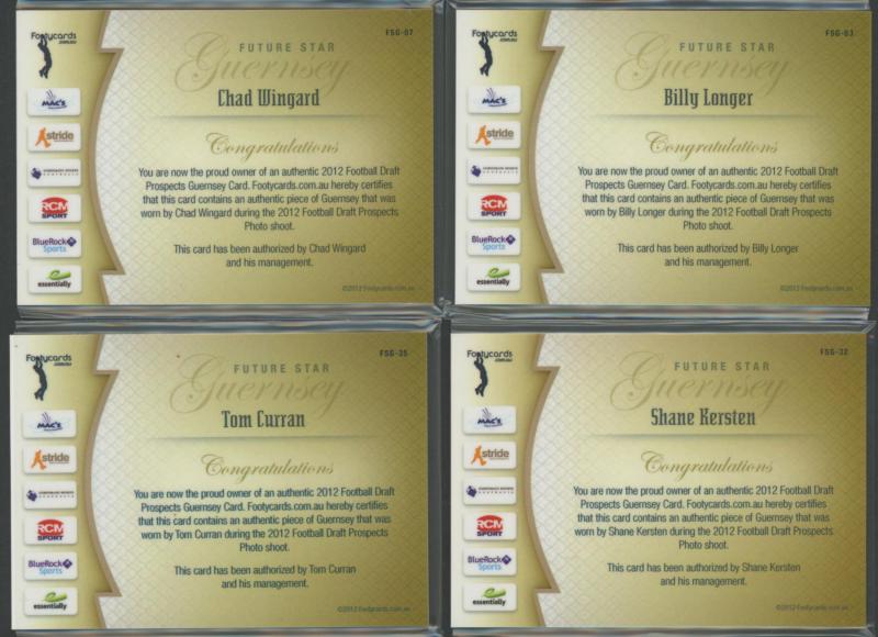 2012 Footycards 'Football Draft Prospects Guernsey Cards' almost complete set [35/36], all Player Edition, includes Lachie Neale,