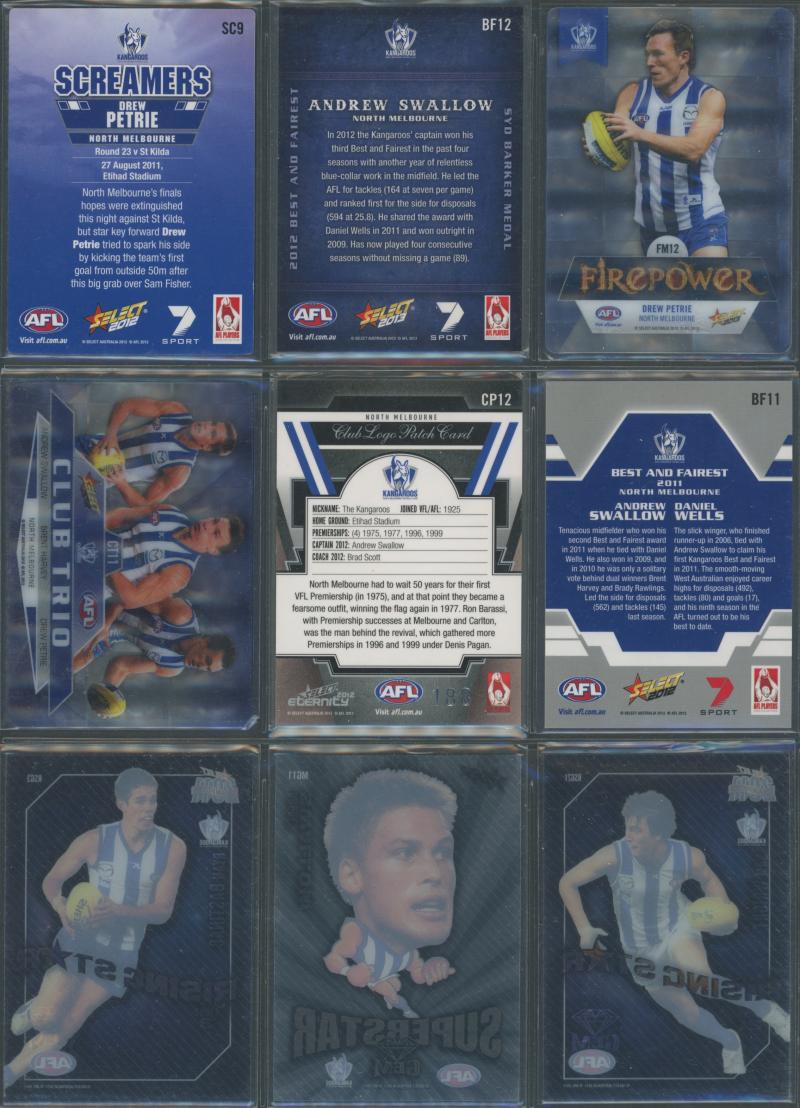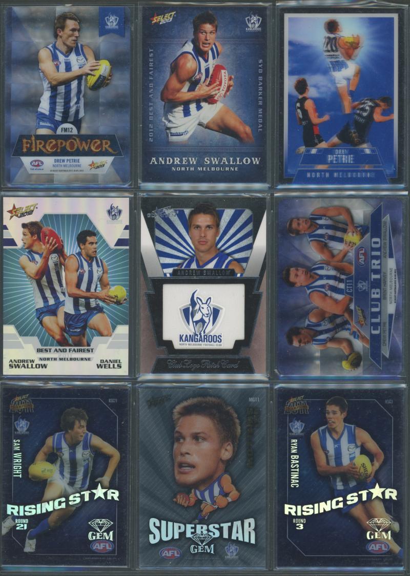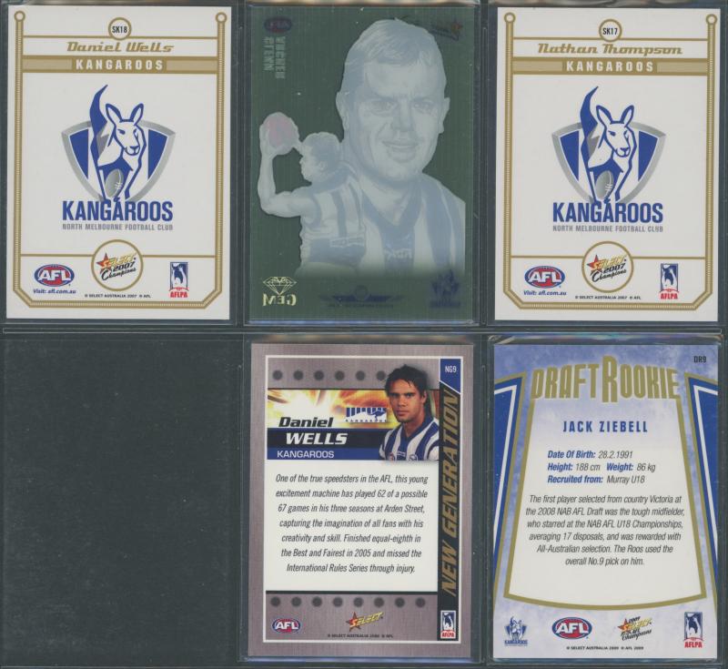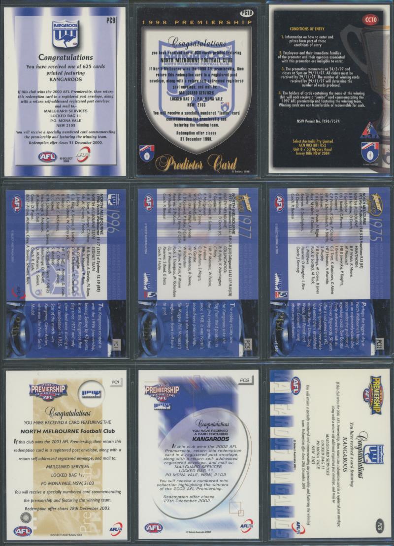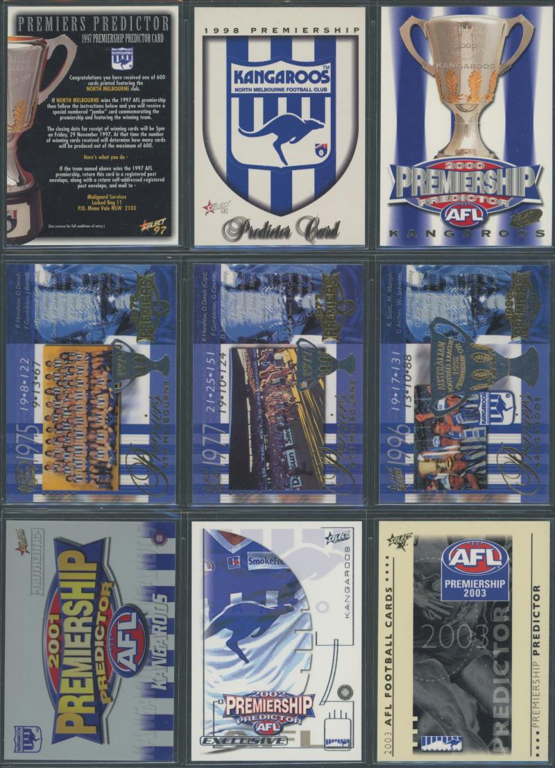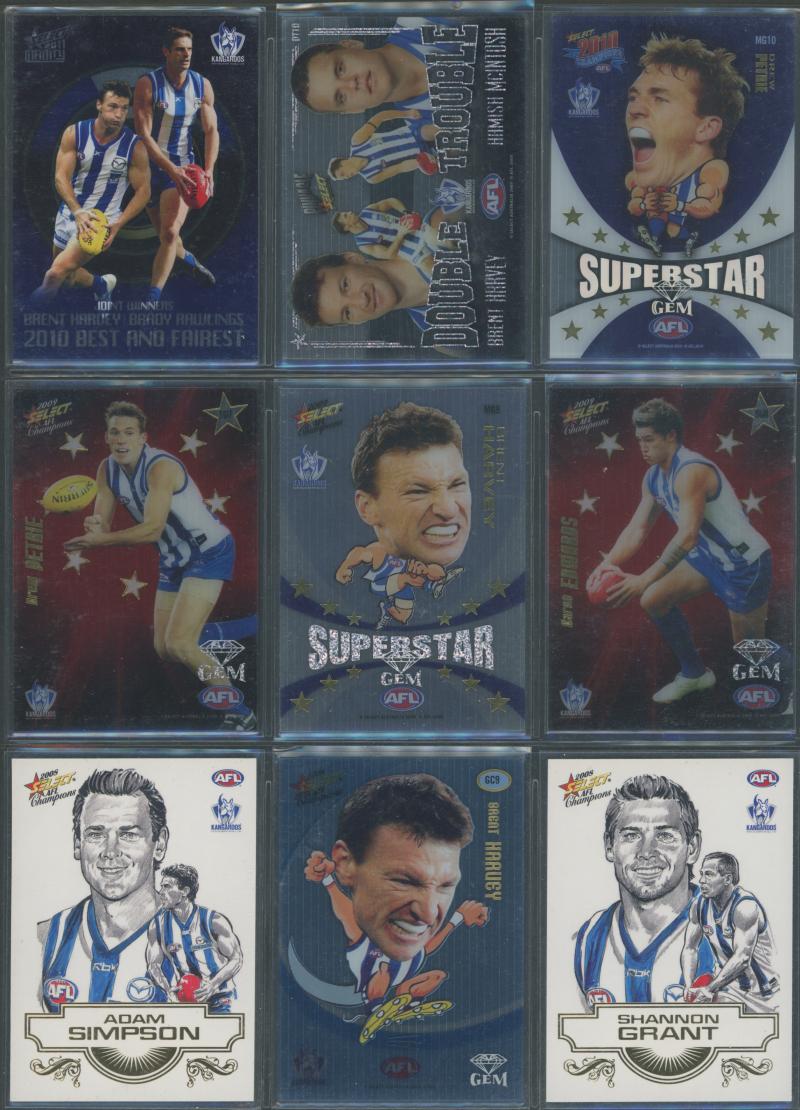 1997-2013 North Melbourne cards including Premiership & Predictor cards (9), insert & chase cards, 2009 Select 'Scanlens Retro'